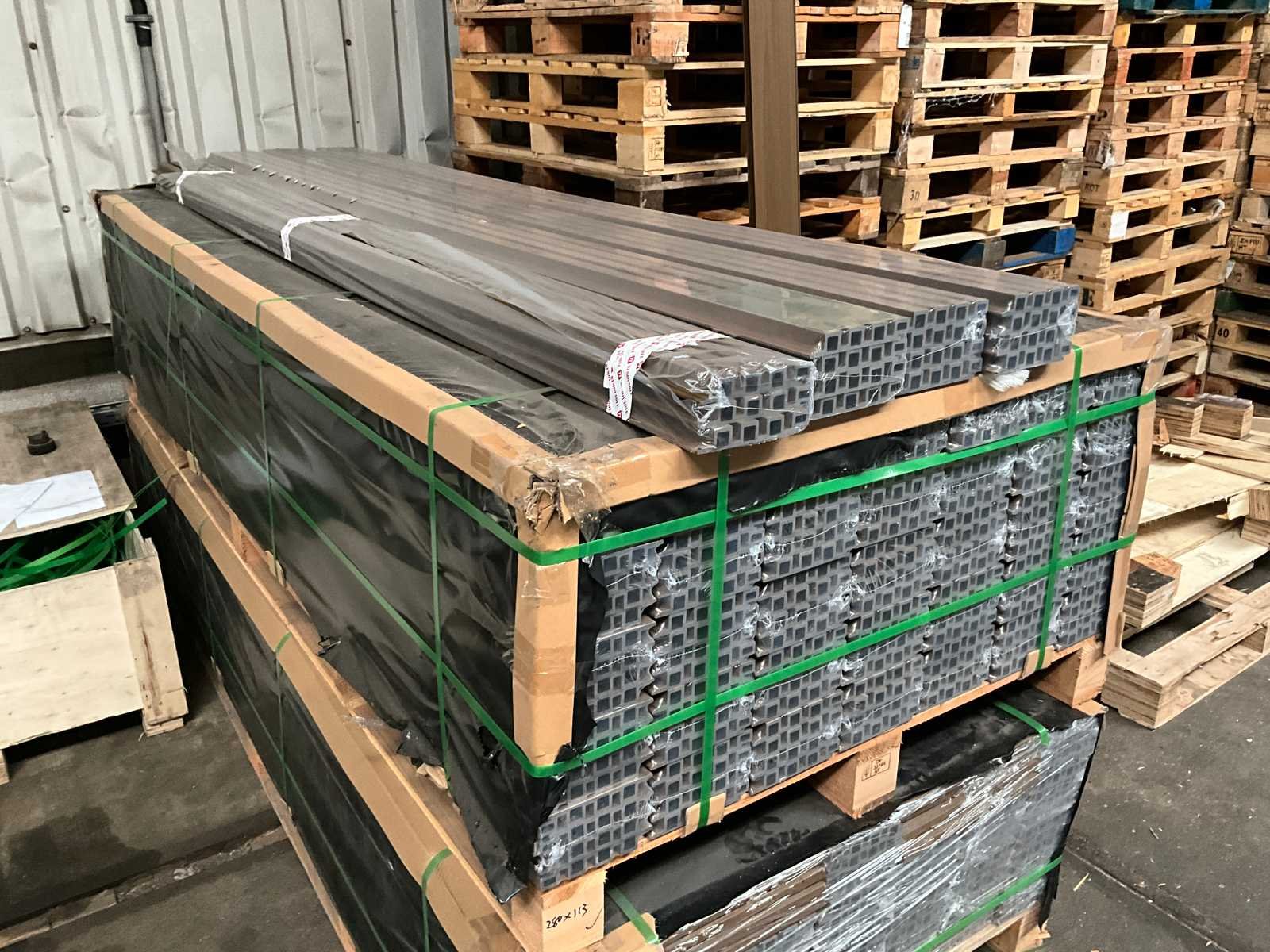 Voorzien van totaal 16 zakken montagebeugels en schroeven; ongebruikt in verpakking Lengte: 280 centimeter Breedte: 16,2 centimeter Werkende breedte: 15,2 centimeter Merk: Rhombus Type: Quadruple Teak Totale afmeting L: 2800mm Totale afmeting Breedte: 160mm
