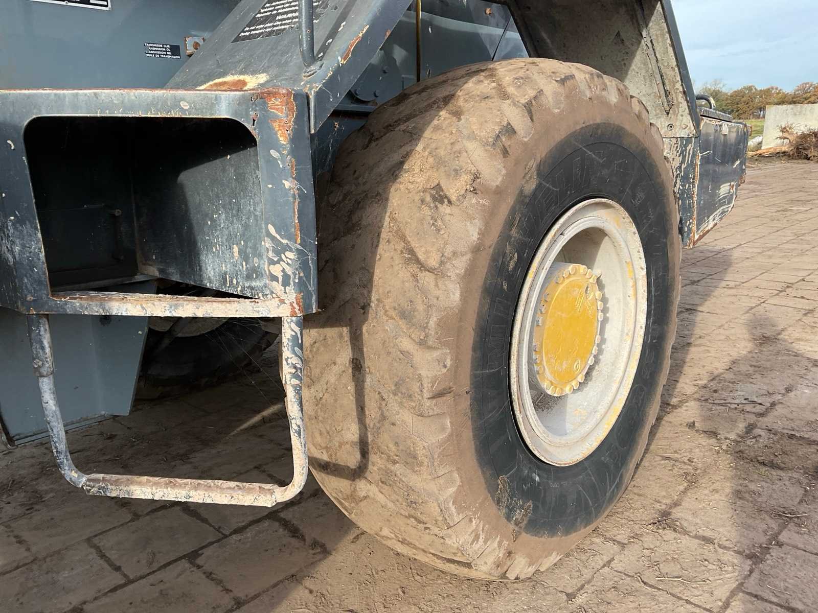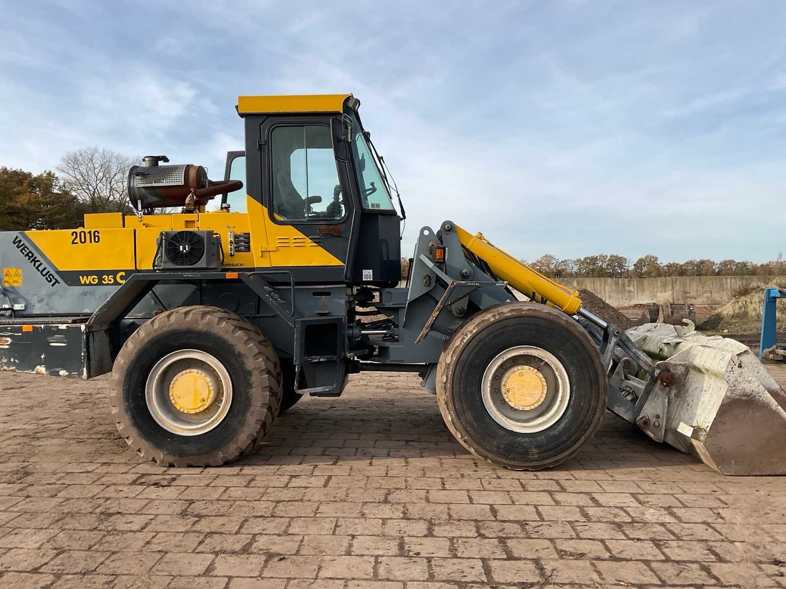 Voorzien van: schepbak (2600mm), hydraulische snelwissel, hydraulische functie op giek met snelkoppeling, verlichting, trekhaak achter, camerasysteem, Merk: Werklust Type: WG 35 C Bouwjaar: 1998 Serienummer: 26784 Merk motor: Cummins Kenteken: TZF-74-S Brandstof: diesel Bandenmaat: Michelin 20.5R25 Cabine: true Afgelezen urenstand: 22108 Eigen gewicht: 14300kg Totale afmeting L: 8350mm Totale afmeting Breedte: 2600mm Totale afmeting Hoogte: 3280mm