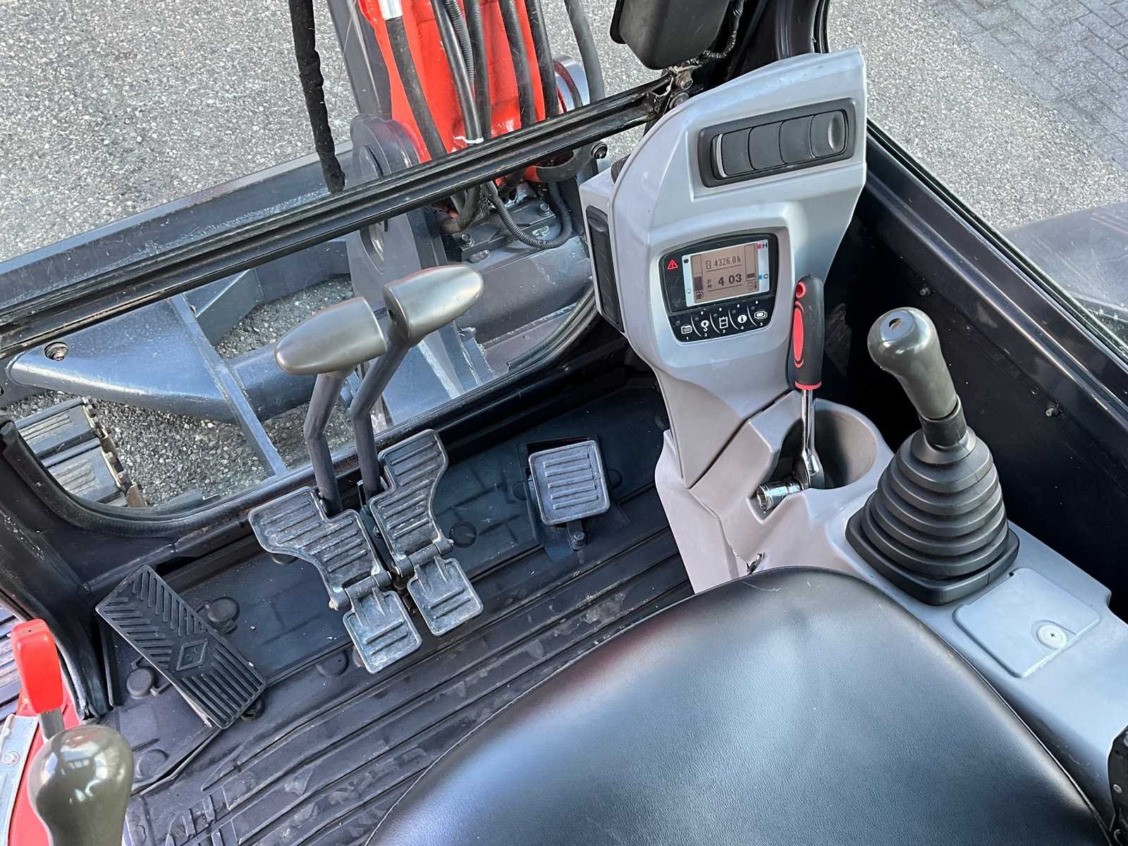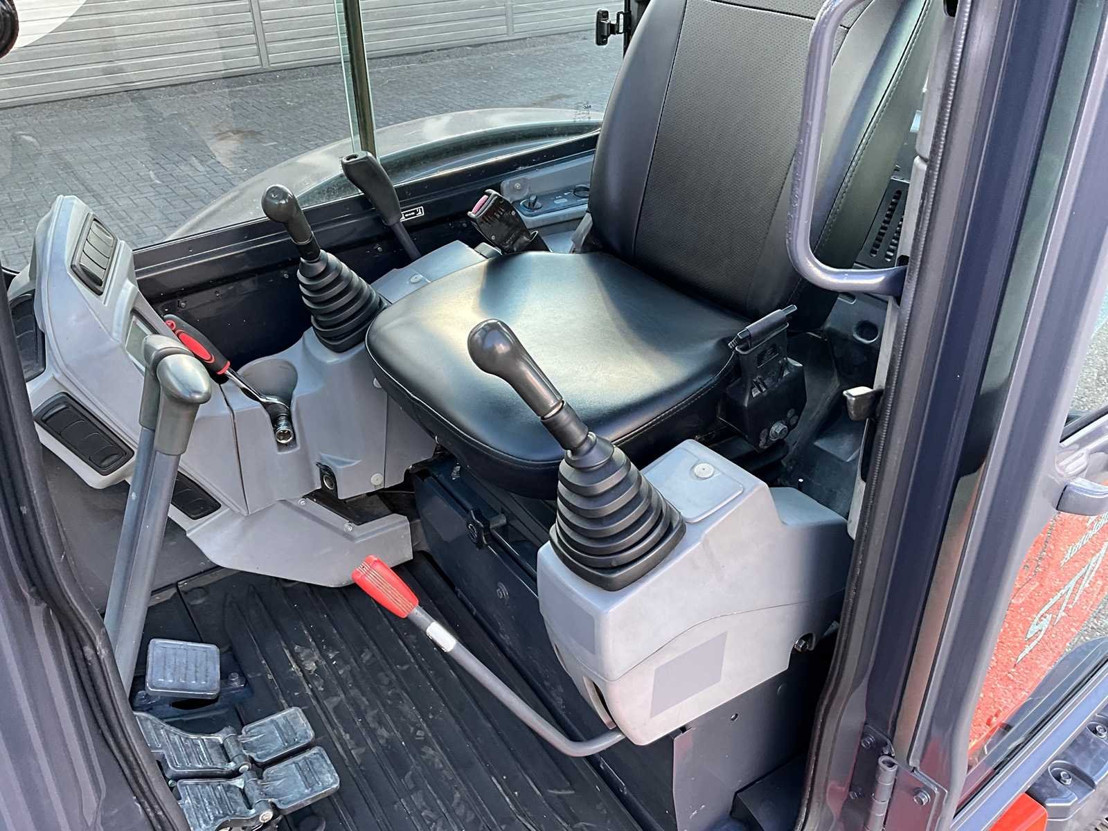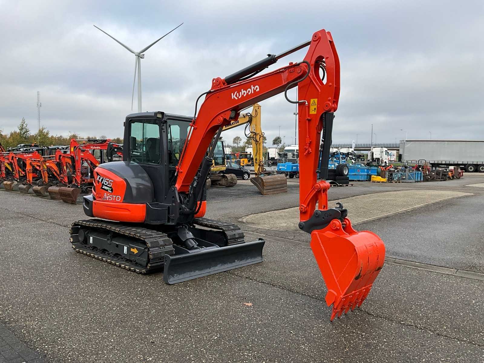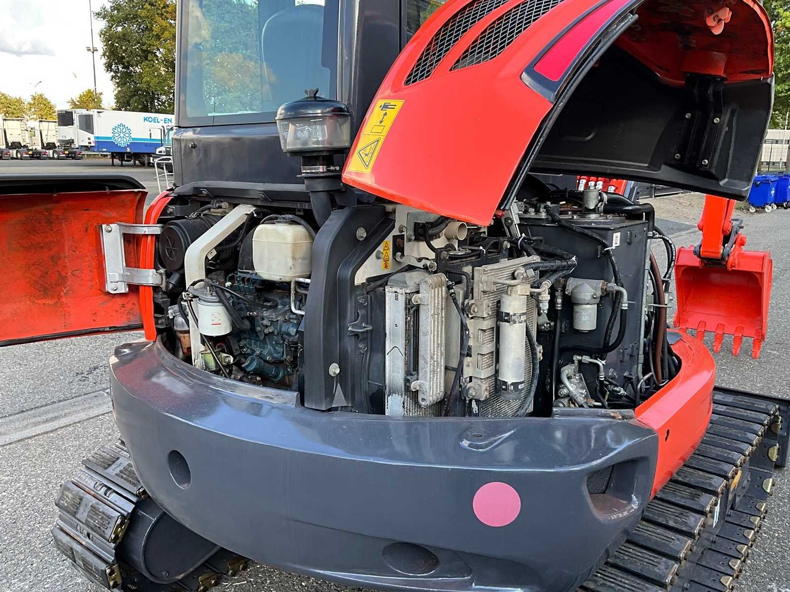 Dieplepelbak met tanden 700mm, mechanische snelwissel, extra hydraulische functie, schuifblad 1950mm, rubber pads op stalen rupsen, Auto Idle toert niet op, 2e rijsnelheid Merk: Kubota Type: KX165-5 Bouwjaar: 2014 Serienummer: 60621 Merk motor: Kubota Motorvermogen (kW): 35.5kW Aantal cilinders: 4 Brandstof: diesel Bedrijfsgewicht: 5540kg Met graafbak: true Graafbak afm. b: 700mm Rups breedte: 400mm Cabine: true Afgelezen urenstand: 4326 Totale afmeting L: 5700mm Totale afmeting Breedte: 2000mm Totale afmeting Hoogte: 2600mm