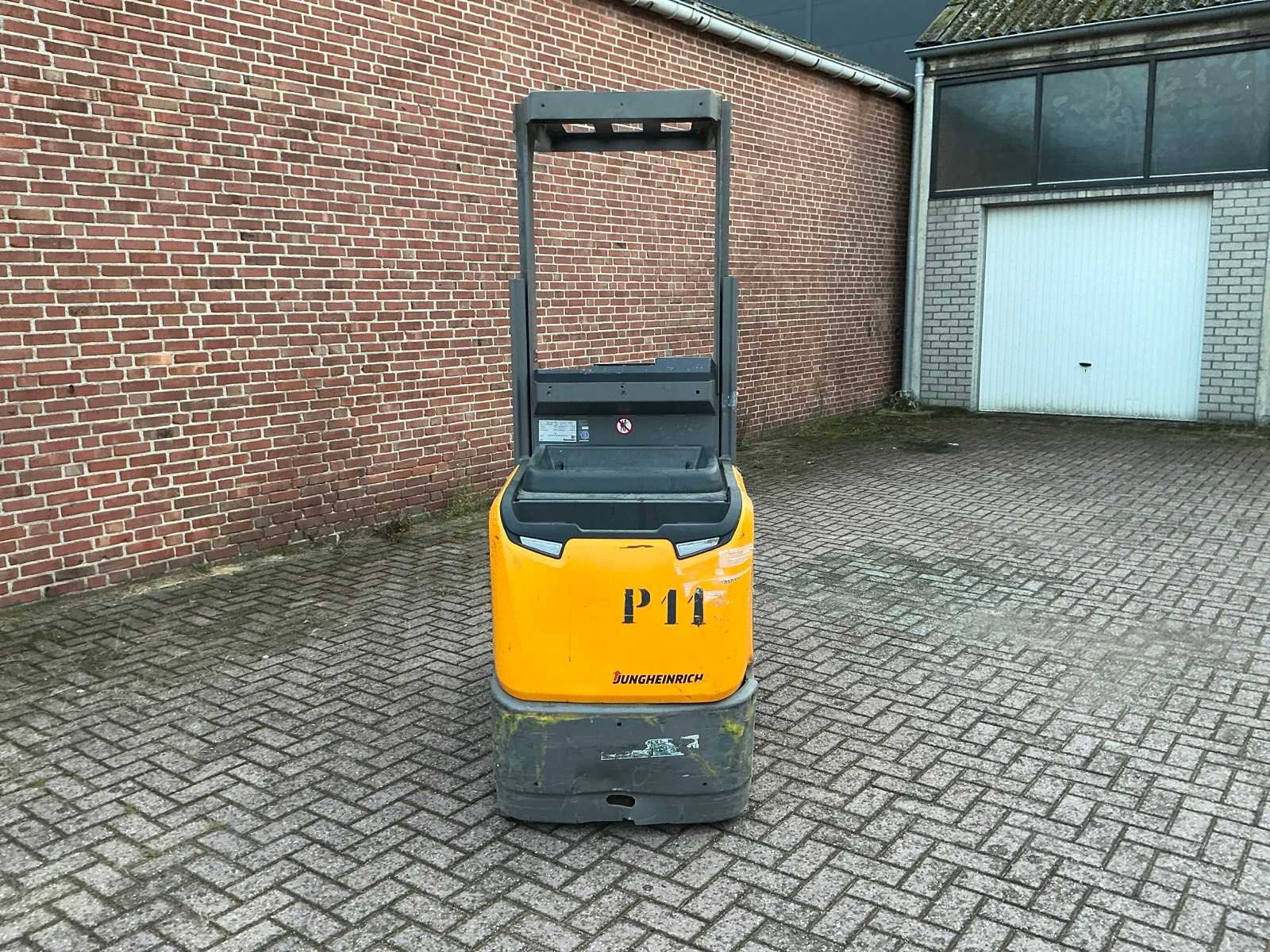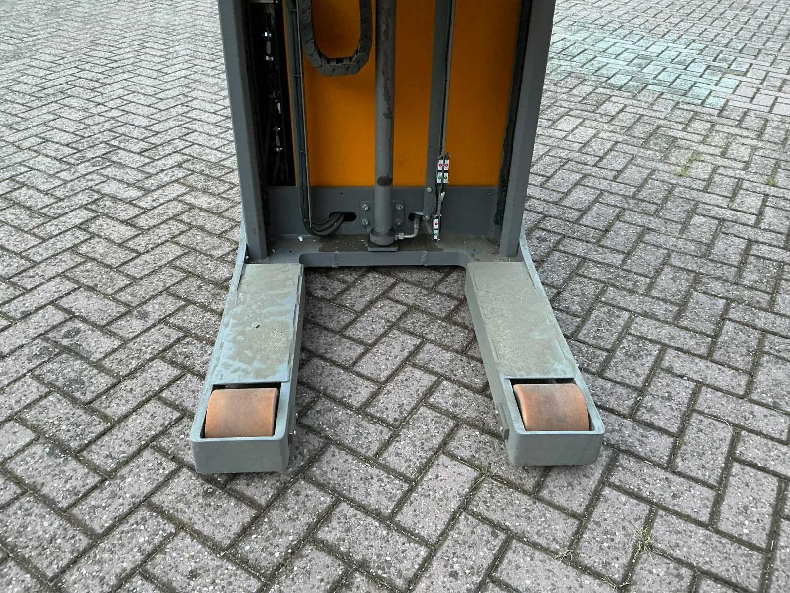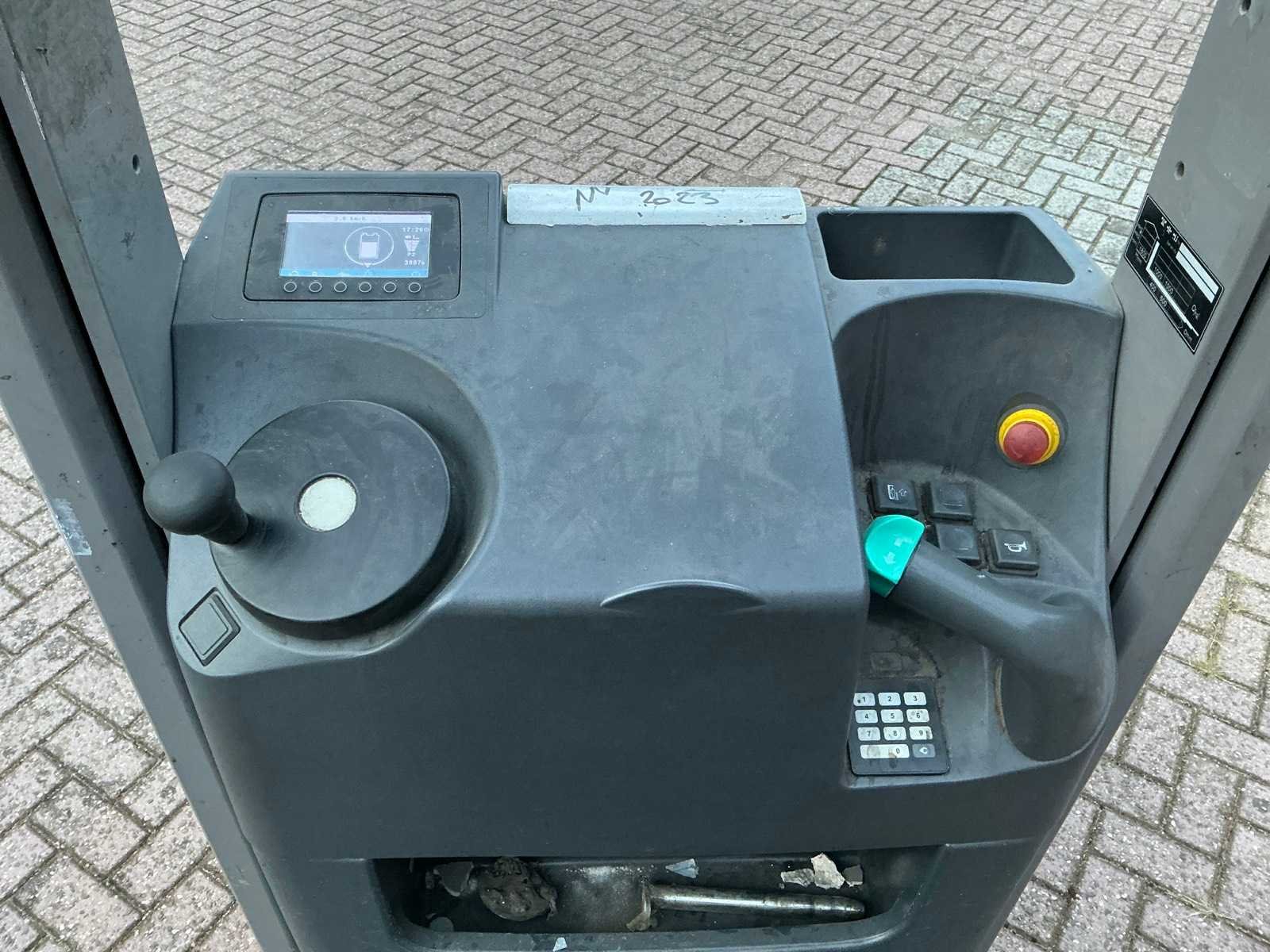 Voorzien van: accu gereviseerd, capaciteit 1000kg, hefhoogte 1000-2800 mm, rijsnelheid 13 km/h, accuspanning 24 V, totale lengte 2.890 mm, lastzwaartepunt van 600 mm, bekleding van de rugleuning, , ergonomische rubbermat, geïntegreerde DIN-A4-houder en andere opbergvakken, energie terugwinning, regeneratief remmen, 4-inch display en een selectie van 3 rijprogramma’s, contactslot, noodstop. Merk: Jungheinrich Type: EKS 110 Bouwjaar: 2020 Serienummer: 91644811 Brandstof: Elektrisch Afgelezen urenstand: 3887 Eigen gewicht: 1661kg Hefvermogen: 1000kg Lepellengte: 1200mm Totale afmeting L: 2890mm Totale afmeting Breedte: 810mm Totale afmeting Hoogte: 1650mm