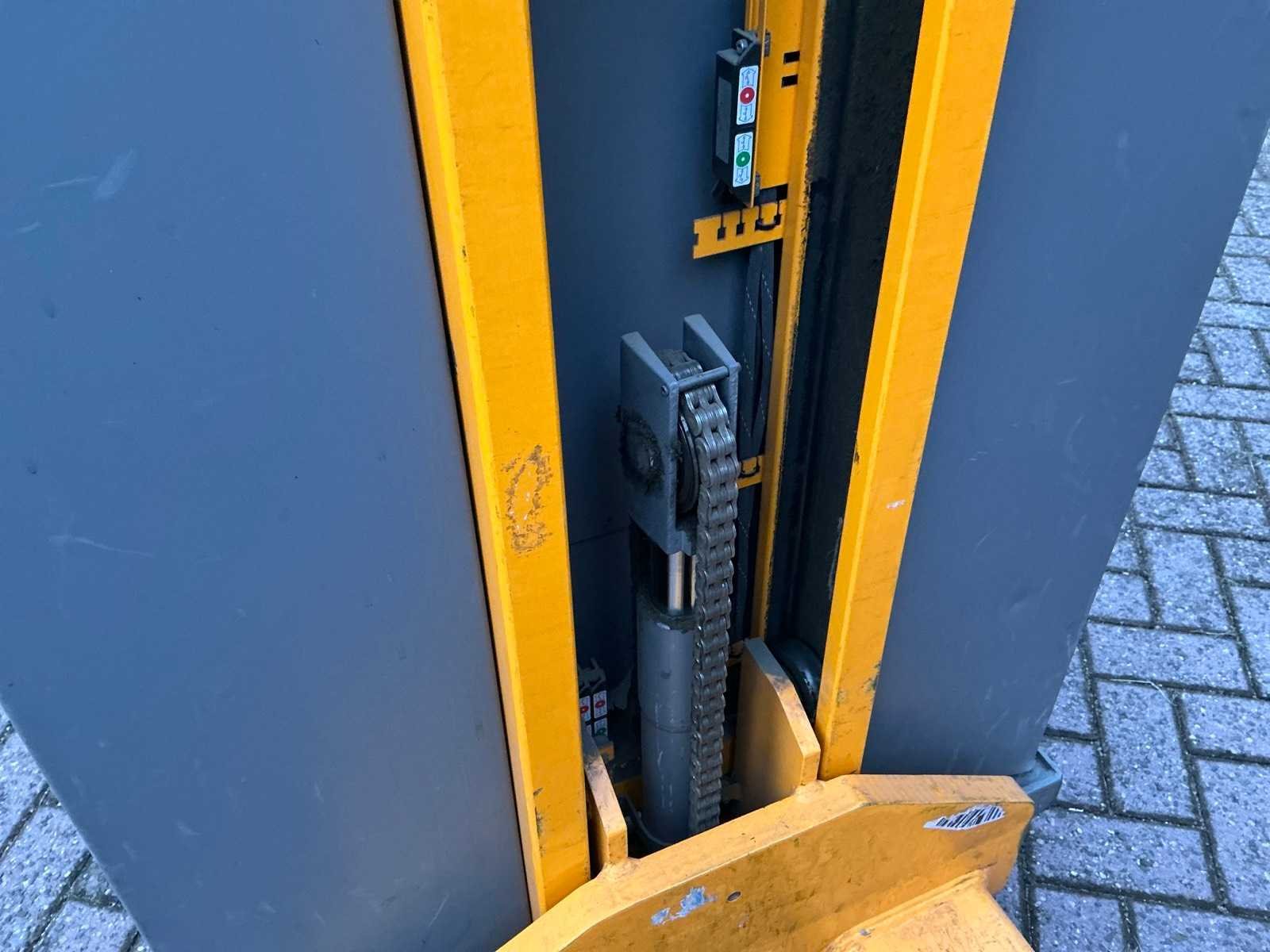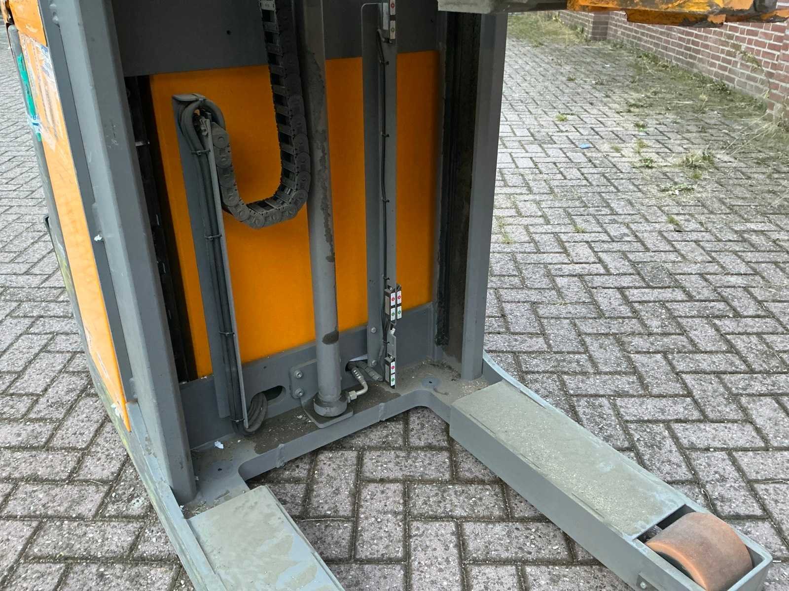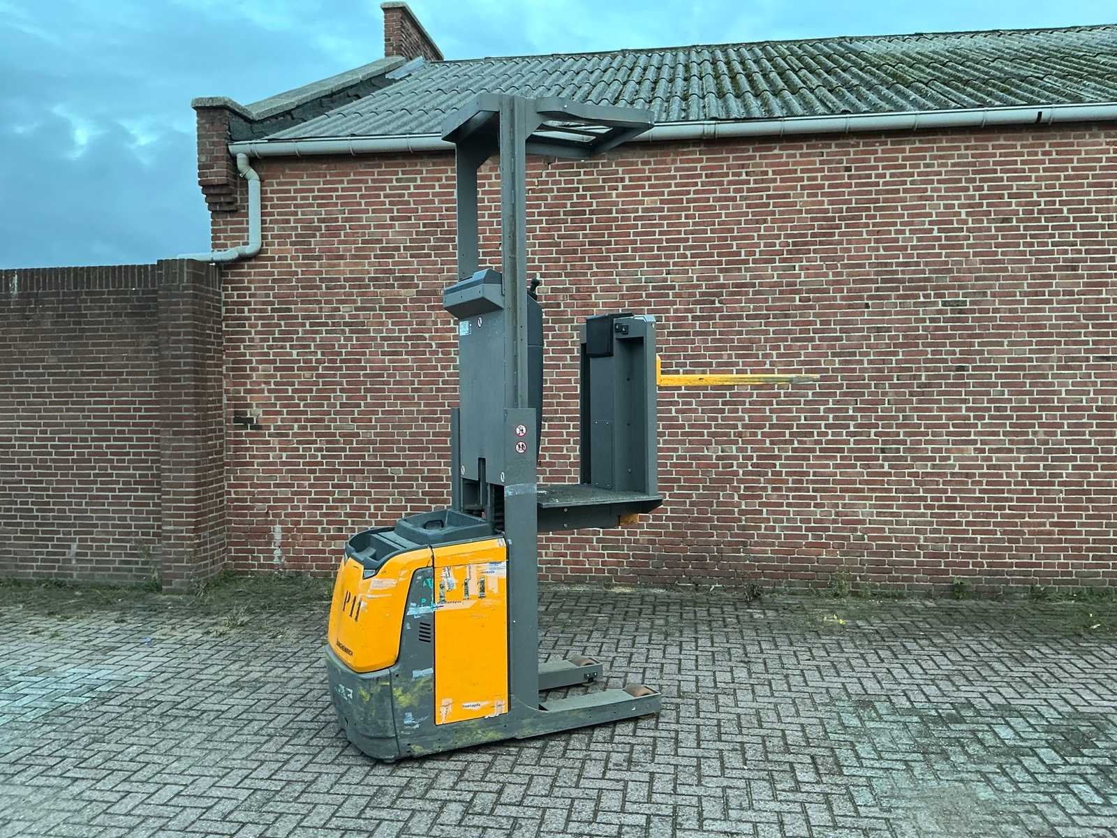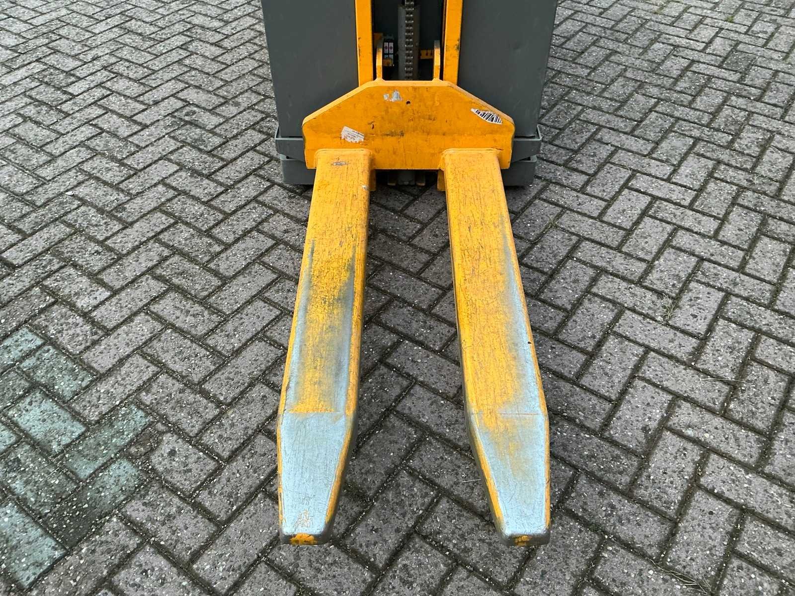 Voorzien van: accu gereviseerd, capaciteit 1000kg, hefhoogte 1000-2800 mm, rijsnelheid 13 km/h, accuspanning 24 V, totale lengte 2.890 mm, lastzwaartepunt van 600 mm, bekleding van de rugleuning, , ergonomische rubbermat, geïntegreerde DIN-A4-houder en andere opbergvakken, energie terugwinning, regeneratief remmen, 4-inch display en een selectie van 3 rijprogramma’s, contactslot, noodstop. Merk: Jungheinrich Type: EKS 110 Bouwjaar: 2020 Serienummer: 91644811 Brandstof: Elektrisch Afgelezen urenstand: 3887 Eigen gewicht: 1661kg Hefvermogen: 1000kg Lepellengte: 1200mm Totale afmeting L: 2890mm Totale afmeting Breedte: 810mm Totale afmeting Hoogte: 1650mm