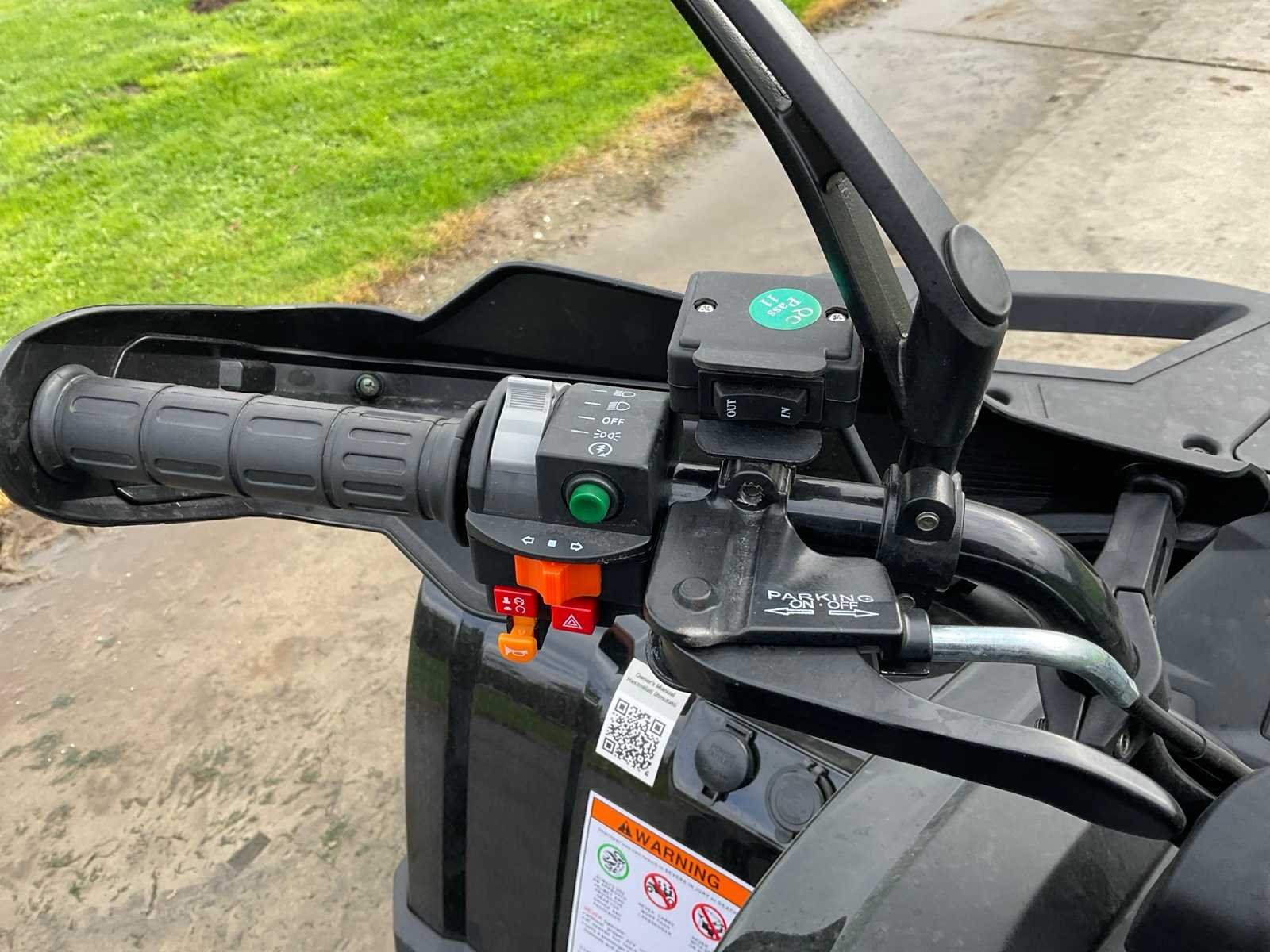 Ongebruikt/nieuw, voorzien van: Laag-hoog versnelling, elektrische lier, verlichting, digitaal display, aluminium velgen, 8” all-terrain banden, K50 trekhaak, 85km/h, CE declaration aanwezig Merk: TAO Motor Product type: TGA300F Aantal zitplaatsen: 2 Transmissie: automaat Bouwjaar: 2025 Afgelezen kilometerstand: 2km Brandstof: benzine Lengte: 195cm Breedte: 110cm Hoogte: 140cm