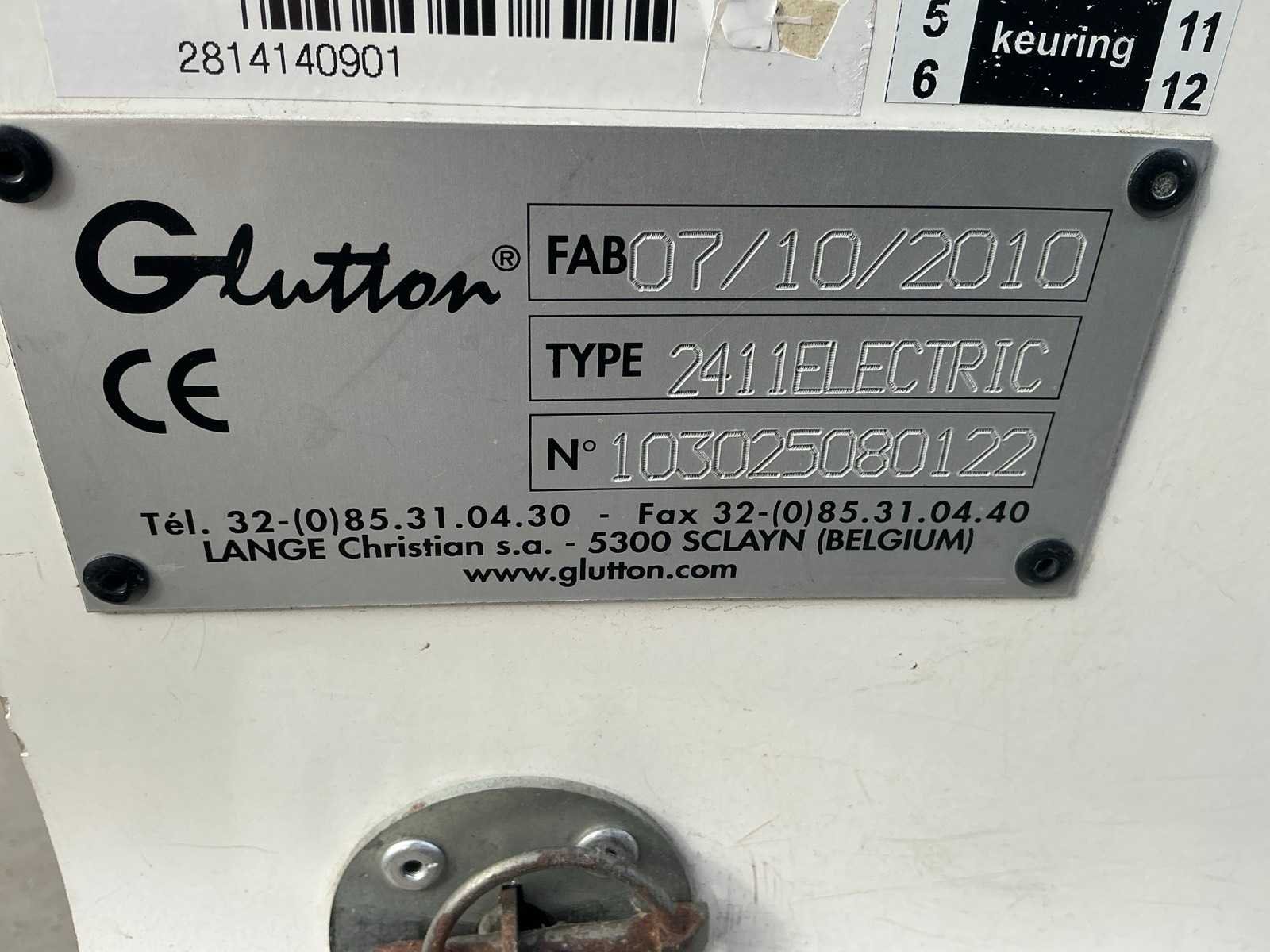 185r Draaiuren; 240V; handmatige bediening door middel van hendel; Merk: Glutton Type: 2411ELECTRIC Bouwjaar: 2010 Serienummer: 103025080122 Totale afmeting L: 1900mm Totale afmeting Breedte: 800mm Totale afmeting Hoogte: 1700mm