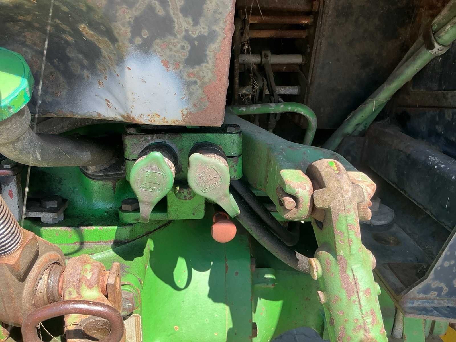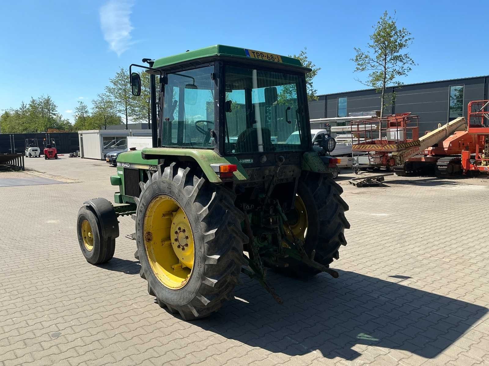 Voorzien van 4 cilinder dieselmotor, vermogen 62 pk, zwaailat, aftakas, boven trekhaak, achterhef, topstang, 2x hydraulisch ventiel achter Merk: John Deere Type: 1640 Synchron Bouwjaar: 1981 Kenteken: TPP-68-J Versnellingsbaktype: Handgeschakeld Aftakastoerental: 540rpm Bandenmaat voor: 10.00-16 Bandenmaat achter: 16.9R34 Aantal hydraulische ventielen voor: 0 Cabine: true Eigen gewicht: 3200kg Totale afmeting L: 3700mm Totale afmeting Breedte: 1950mm Totale afmeting Hoogte: 2600mm Kentekenpapieren compleet?: true Datum eerste toelating: 1981-06-30