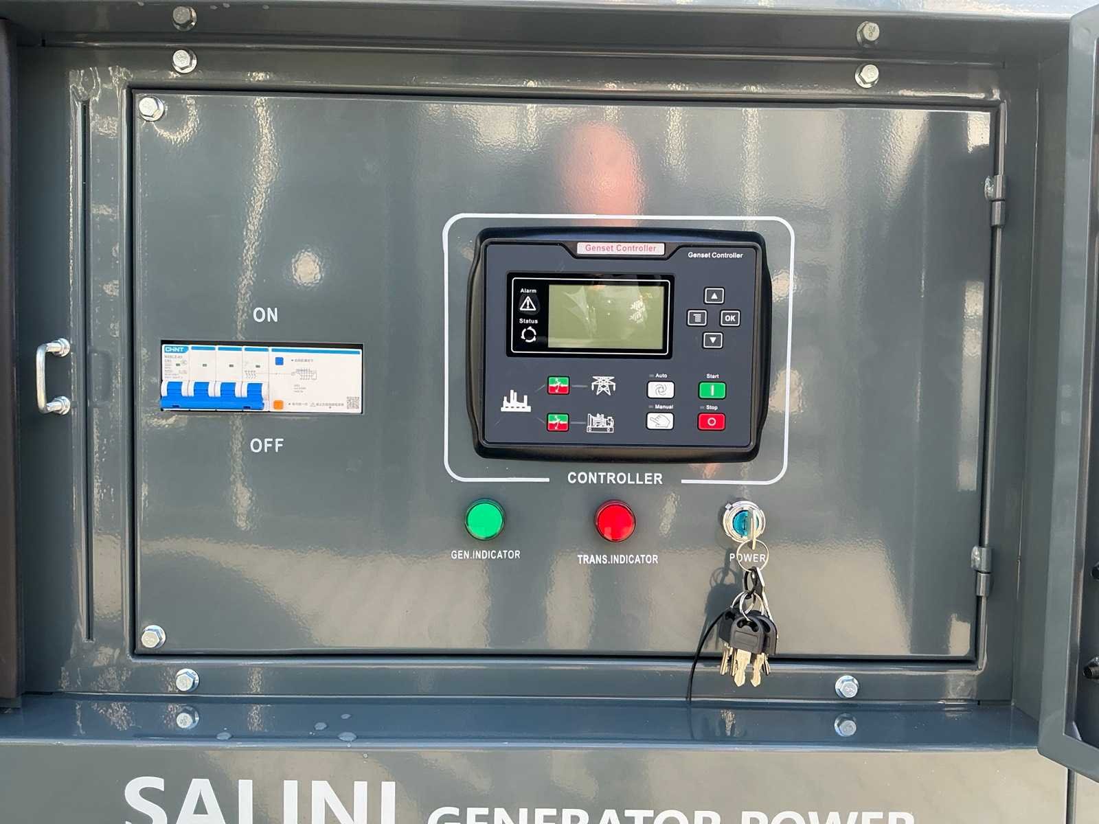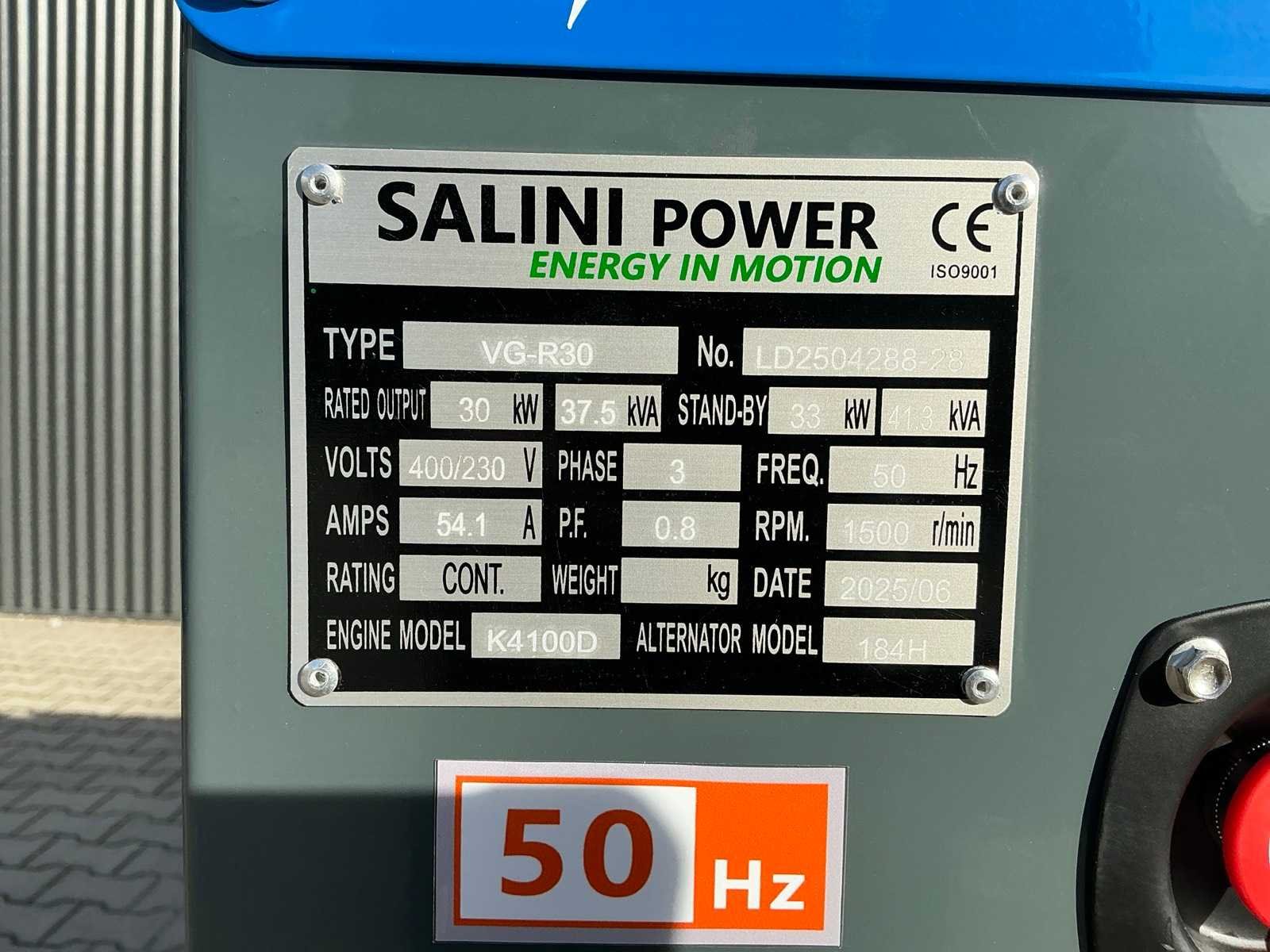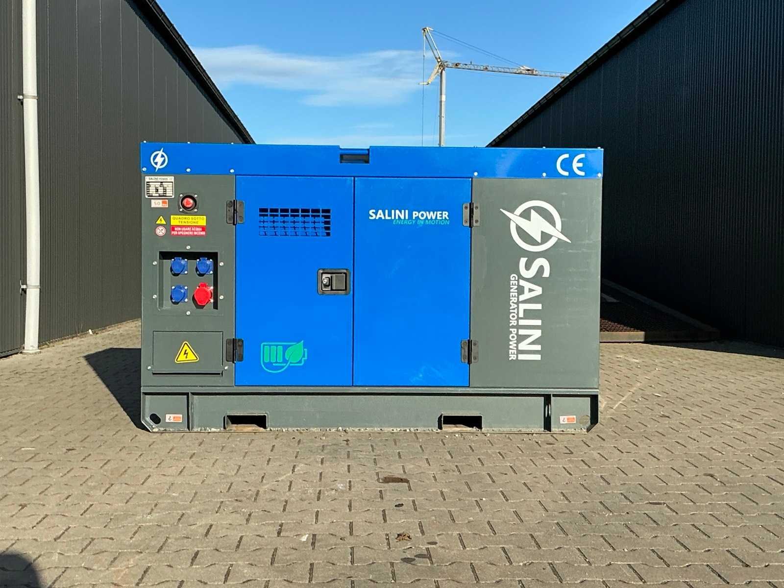Frequentie: 50 Hz, voorzien van elektronisch bedieningspaneel/display, handleiding, hijsogen, lepelgaten/heftruckgaten Merk: Salini Type: VG-R30 Capaciteit.: 41.3kVA Aansluiting: 400V Motor merk: EBSO Motorcapaciteit: 30.1kW Generator merk: AC Generator type: 3 fasen Generator capaciteit: 55A Afgelezen urenstand: 0 Machinegewicht: 800kg Totale afmeting L: 2200mm Totale afmeting Breedte: 970mm Totale afmeting Hoogte: 1050mm