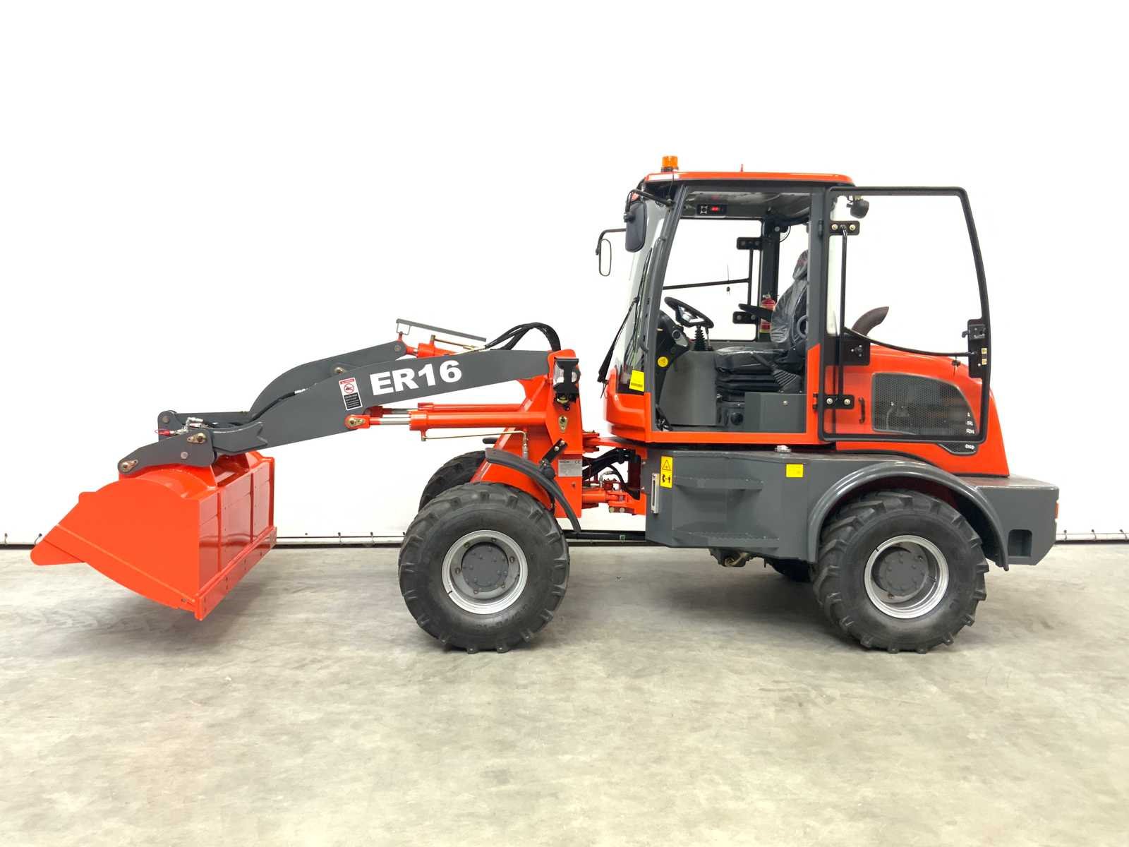 Hydraulische snelwissel; rated load 1600kg; maximale hefhoogte 2980mm; Motervermogen 50PK; Transmissie 2 versnellingen Torque Converter Max. rijsnelheid: 22 km/h; 4WD; Luxe volledig gesloten cabine; V.v. 1 deur; te openen raam; geveerde stoel; radio; ventilator en verwarming; Kantelbare cabine ivm vereenvoudigd onderhoud; graafbak van 0.80 m3 en palletvorken; totale afmeting met graafbak; 6152 Merk: Everun Type: ER16 Bouwjaar: 2025 Merk motor: XINCHAI A498 BT1 Motorvermogen (kW): 36.80kW Aantal cilinders: 4 Brandstof: Diesel Graafbak afm. b: 2000mm Bandenmaat: 23.5/70-16 Cabine: true Afgelezen urenstand: 1 Eigen gewicht: 3800kg Totale afmeting L: 5240mm Totale afmeting Breedte: 1900mm Totale afmeting Hoogte: 2600mm