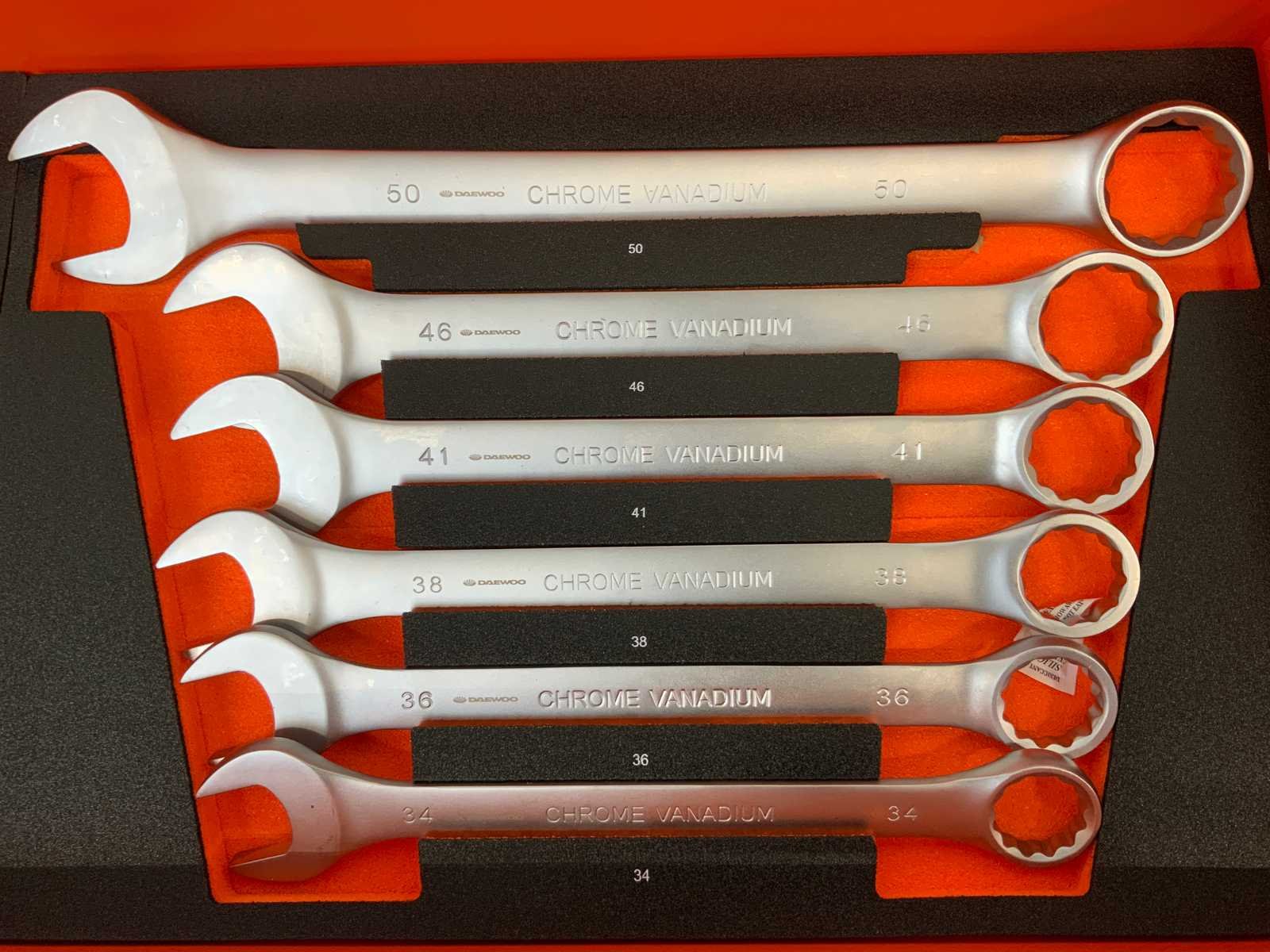Ongebruikt; gereedschap in plastic verpakt; 12-delig tangenset; 13-delig hamerset; 14-delig meetset; 36-delig slagmoersleutel set; 21-delig sleutels met T-greep; 41-delig schroevendraaierset; 29-delig combinatiesleutels; 12-delig ringsleutels; 125-delig deppenset; 84-delig bitjes set; 6443 Merk: Daewoo Type: DAMW387