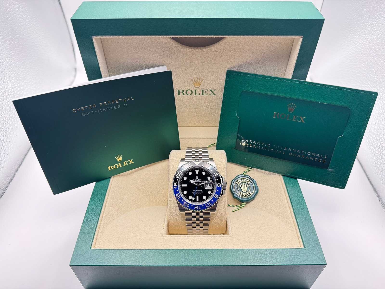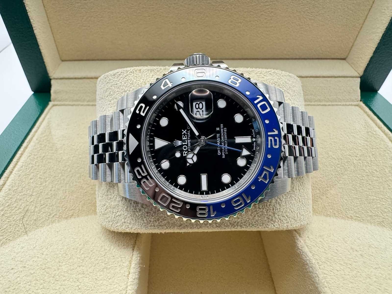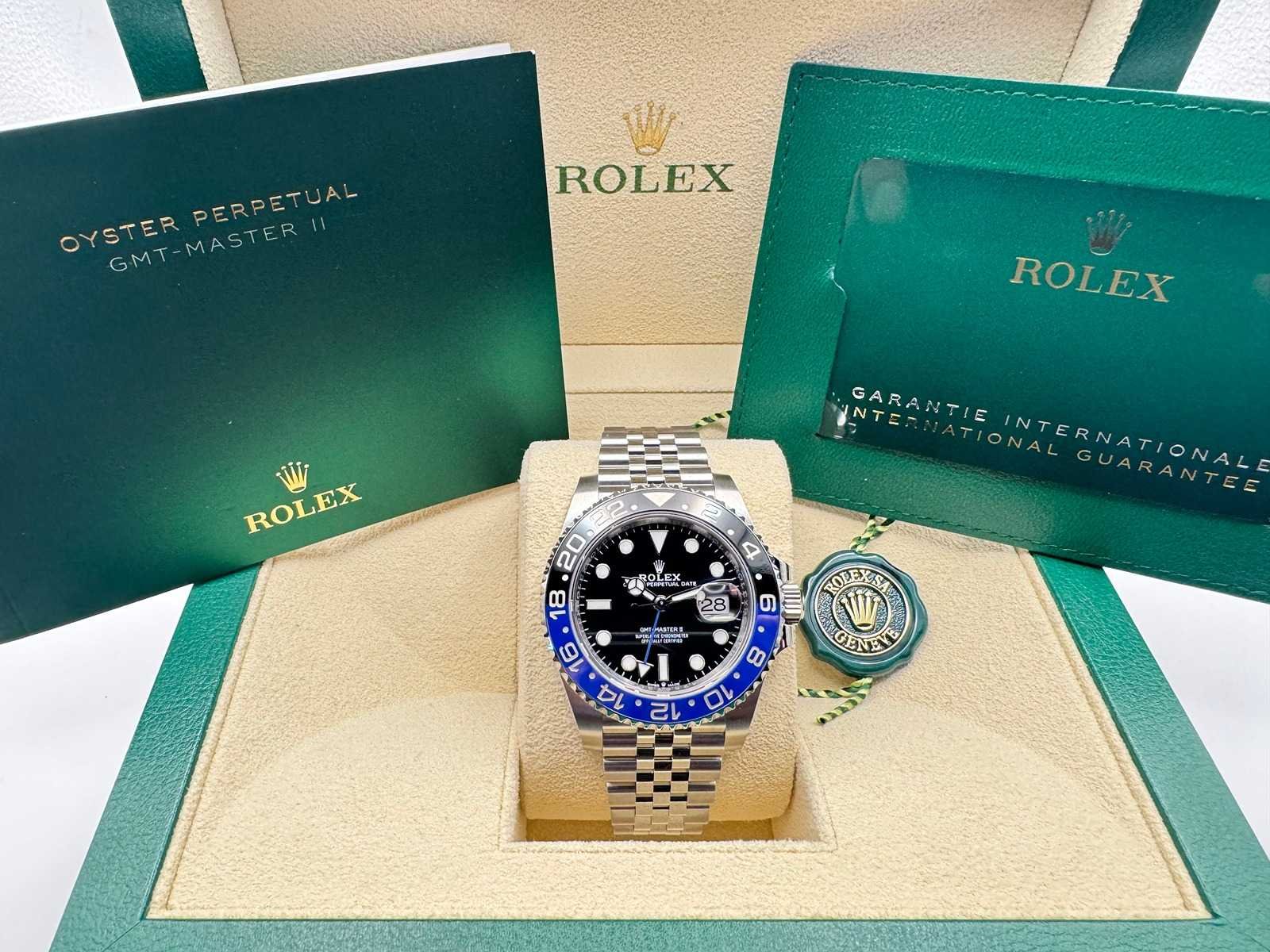 Condition: Brand new, unworn Set: Full set – includes original box, papers, Rolex warranty card, booklets, leather pouch, and Rolex tag. Model: GMT-Master II (126710BLNR), 40mm Oystersteel case Features: Black and blue ceramic “Batgirl” bezel, Jubilee bracelet, automatic movement with GMT function Warranty: Full 5-year international Rolex warranty Merk: Rolex Model: GMT-Master II Bouwjaar: 2025 Referentienummer: 126710BLNR Materiaal kast: Steel Materiaal horlogeband: Steel Jubilee Materiaal sluiting: Steel Wijzerplaat: Black Kastmaat: 40 mm
