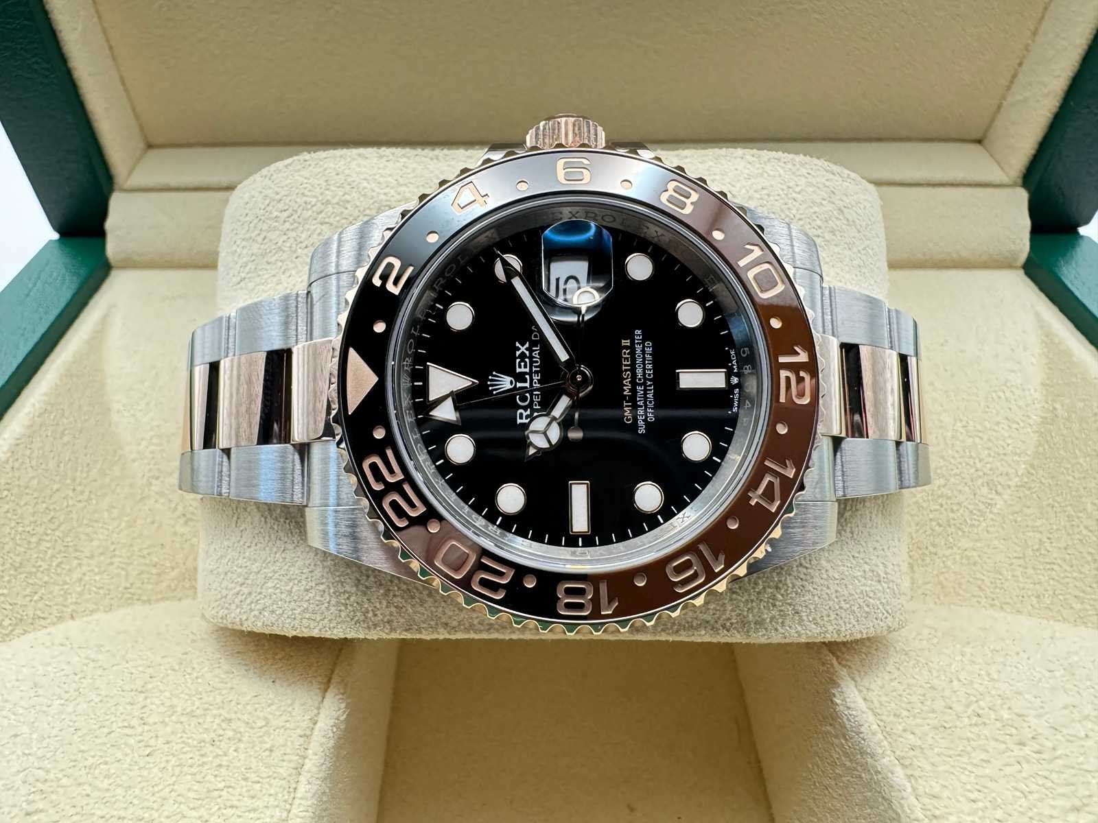 Condition: Brand new, unworn Set: Full set – includes original box, papers, Rolex warranty card, booklets, leather pouch, and Rolex tag Model: GMT-Master II (126711CHNR), 40mm stainless steel and Everose gold case with black and brown ceramic bezel Features: Black dial, Everose gold two-tone Oyster bracelet, dual time zone functionality, scratch-resistant sapphire crystal Warranty: Full 5-year international Rolex warranty Merk: Rolex Model: GMT-Master II Bouwjaar: 2025 Referentienummer: 126711CHNR Materiaal kast: Steel Materiaal horlogeband: Steel Rose Gold Materiaal sluiting: Steel Rose Gold Wijzerplaat: Black Kastmaat: 40 mm