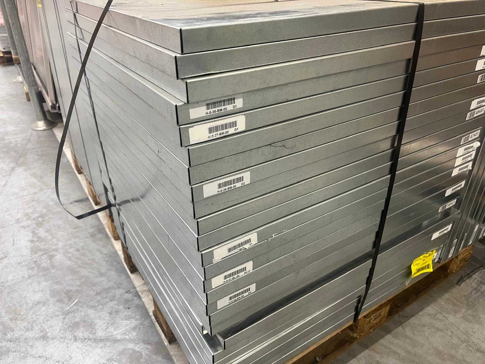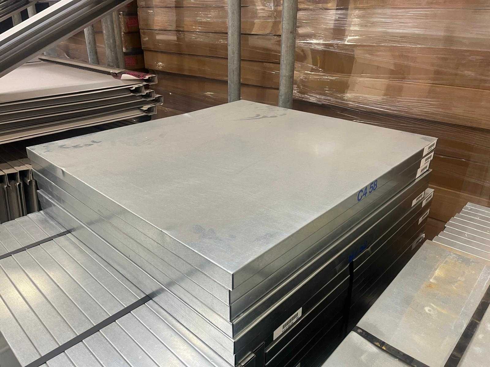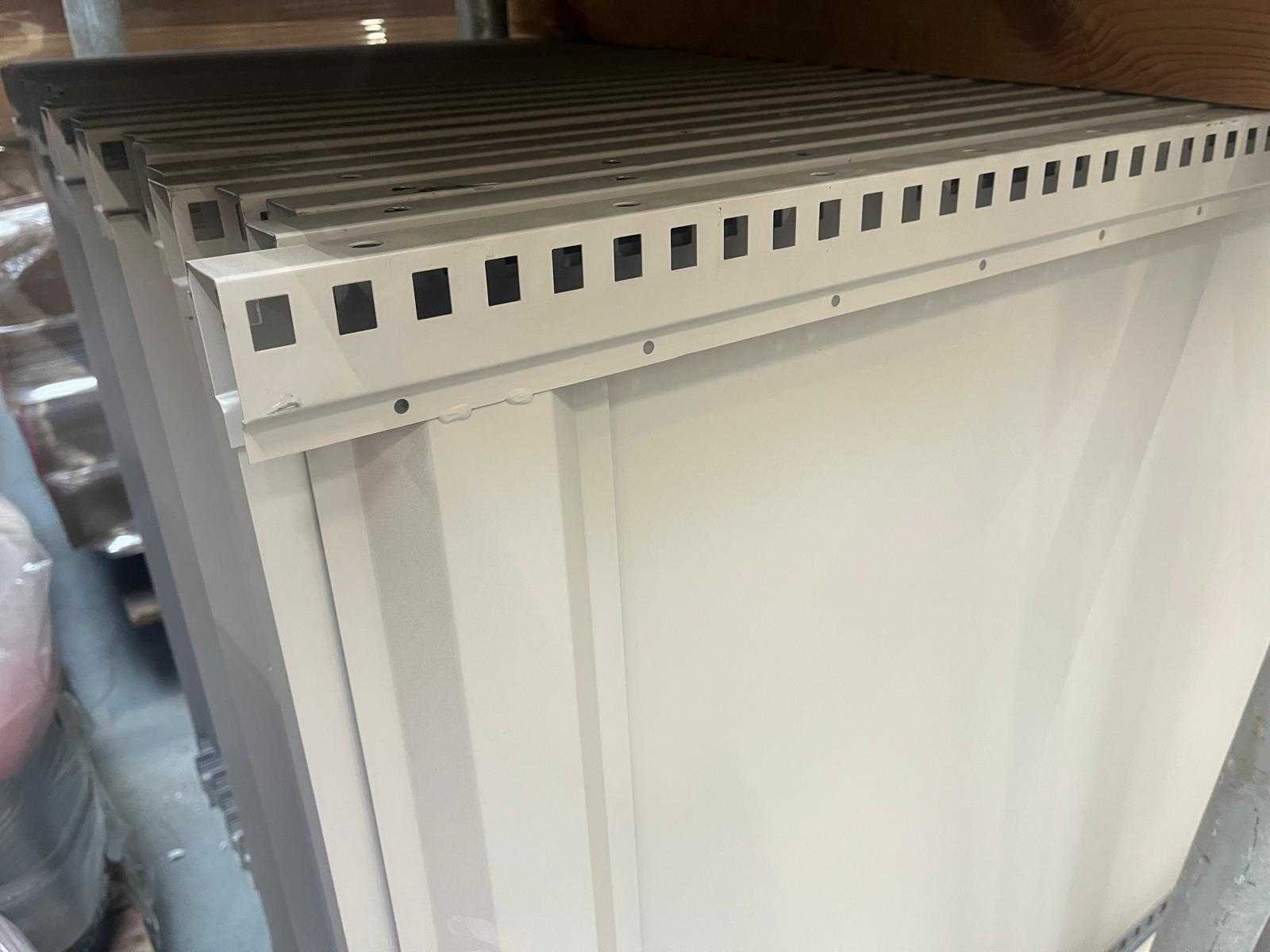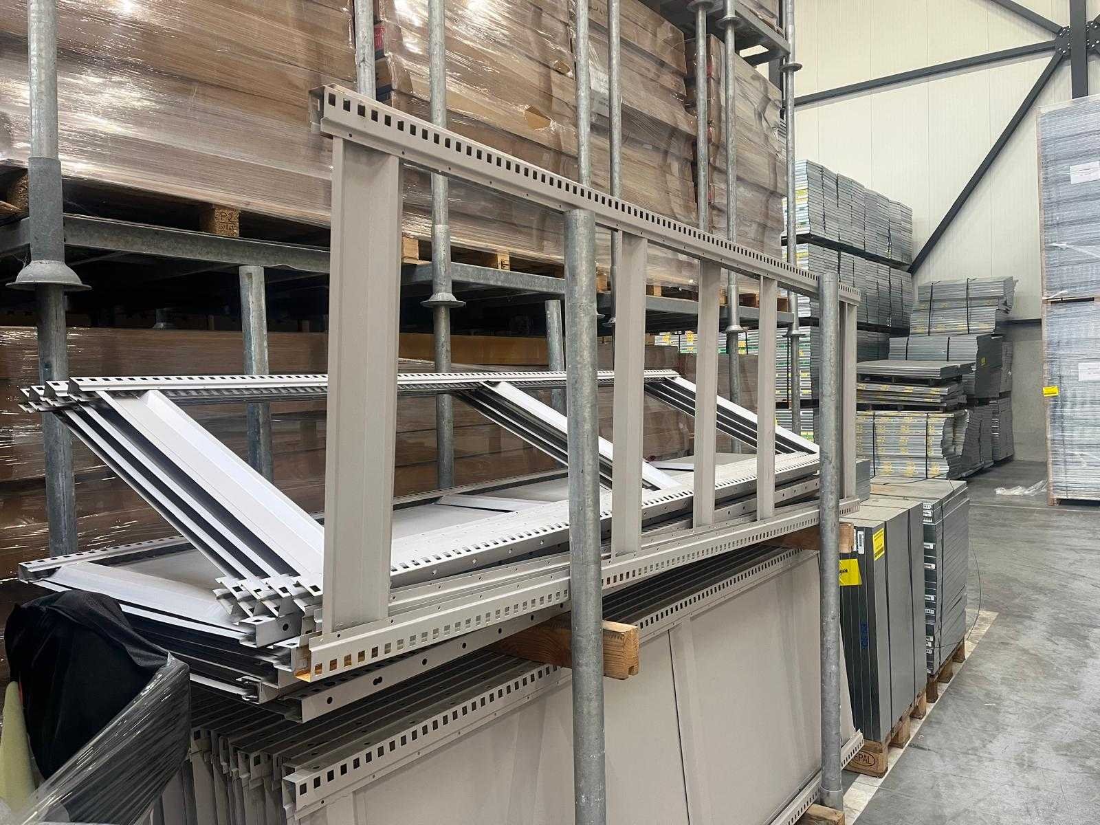 Let op zonder clips; Merk: Magista Aantal secties: 49 Sectie afm. b: 860mm Sectie diepte: 800mm Sectie afm. h: 2400mm Aantal staanders: 50 Aantal legborden: 136