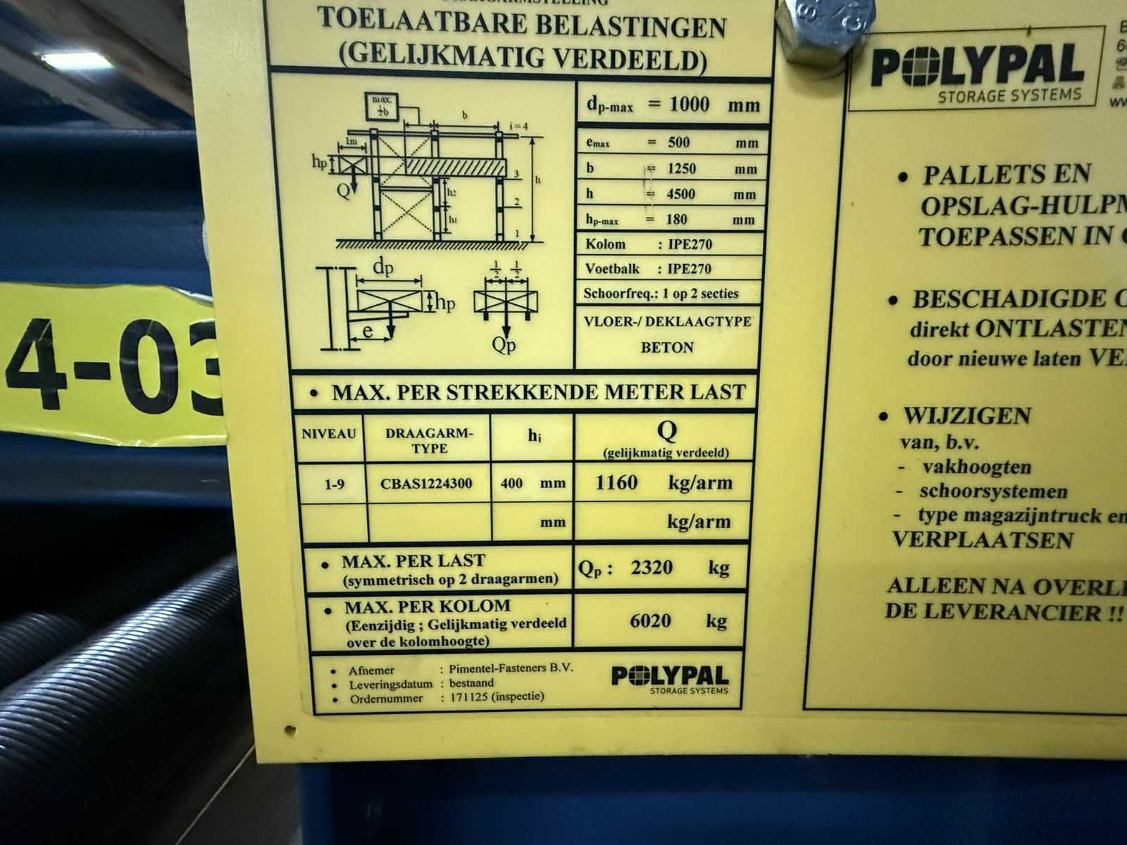 Wordt transport klaar en gedemonteerd uitgeleverd; 3 staanders en 27 armen; zonder inboedel; IPE270 Merk: Polypal Sectie afm. h: 4500mm Aantal staanders: 3 Aantal liggers: 27 Demontabel: true