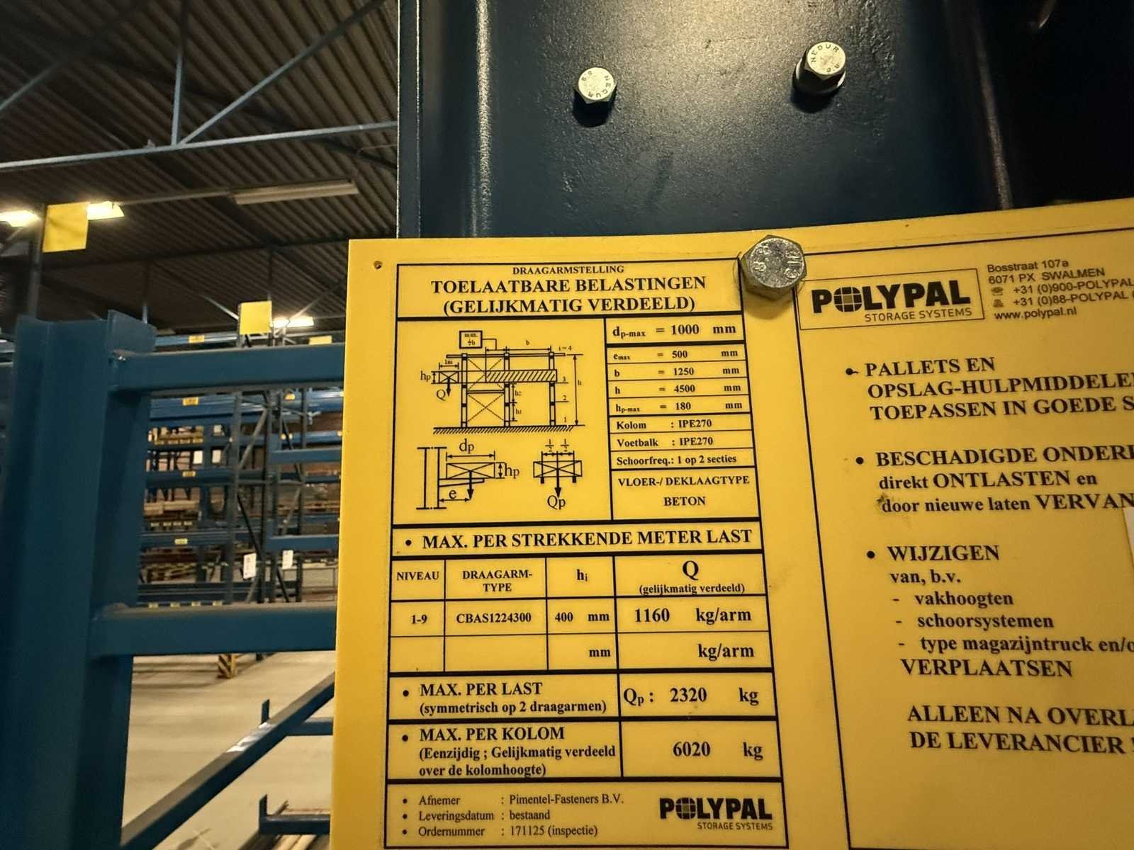 Wordt transport klaar en gedemonteerd uitgeleverd; 3 staanders en 27 armen; zonder inboedel; IPE270 Merk: Polypal Sectie afm. h: 4500mm Aantal staanders: 3 Aantal liggers: 27 Demontabel: true