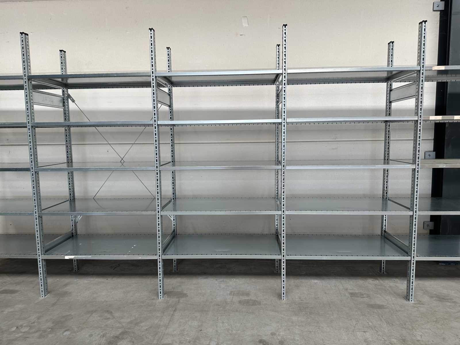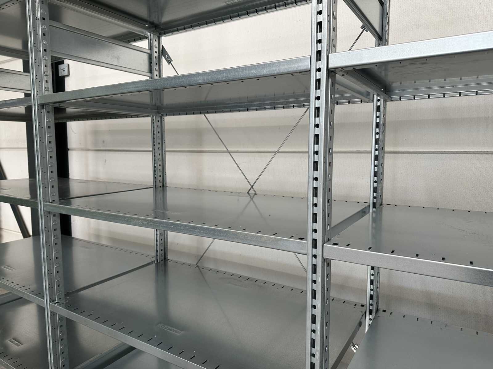 Met schoorset; gebundeld; foto's ter indicatie; afmeting kan iets afwijken; Merk: Schäfer Sectie afm. b: 600mm Sectie diepte: 1000mm Sectie afm. h: 2278mm Aantal staanders: 4 Aantal legborden: 10