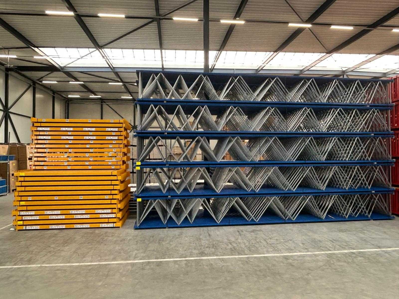 Reeds professioneel gedemonteerd; word in pakketten uitgeleverd; 1 pakket staanders bevat 12 stuks; 1 laag liggers bevat 20 stuks; bouwjaar 2023; Merk: Jungheinrich Sectie afm. b: 1100mm Sectie diepte: 3600mm Sectie afm. h: 10500mm Aantal staanders: 12 Aantal liggers: 100 Demontabel: true Model: MPB
