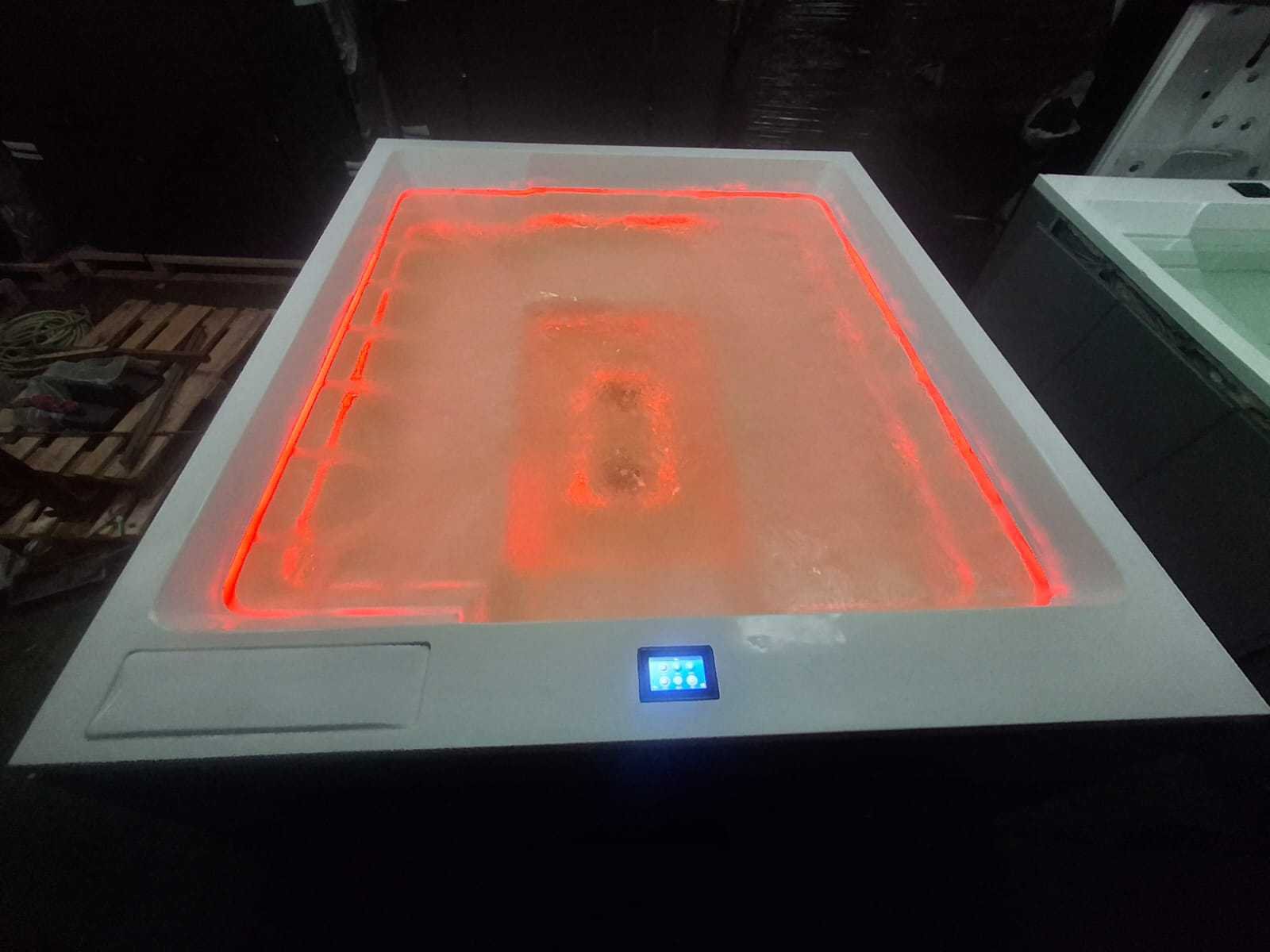 Voorzien van led verlichting in alle kleuren; luxe design spa; nieuw prijs €21.990,-; Balboa besturing (Marge, geen BTW) Merk: Infinitas Model: Paolo ferralli invisibile Product type: 8 persoons Verlichting: Ja Aantal personen: 8 Lengte: 280cm Breedte: 235cm Hoogte: 105cm
