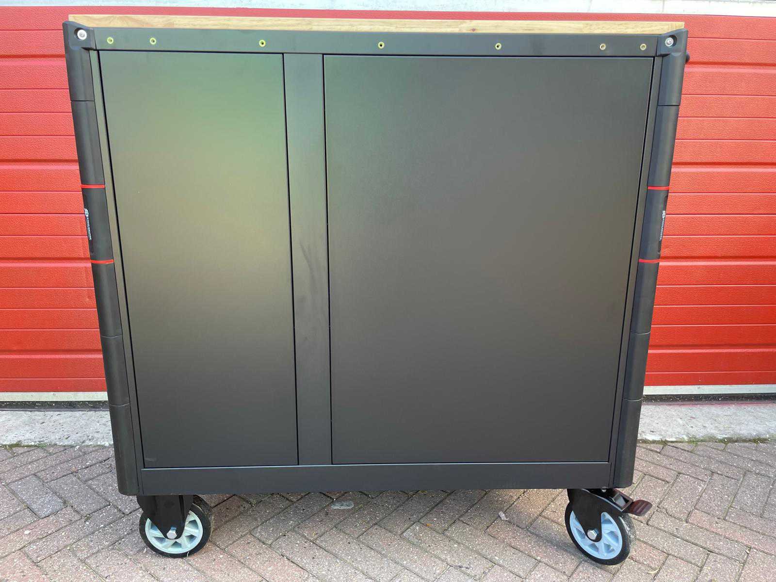 Gevulde gereedschapswagen; aantal gevulde laden: 11 gevulde laden; gereedschap: chrome vanadium; inhoud: 2 dopsleutel sets, momentsleutel, ringsteeksleutel set 6-32, ringratelsleutel 8-19, inbussleutel set, ringsleutel set 6-32, torx sleutel set T8-T70, schroevendraaier set (21 stuks), tangen set (9 stuks), beitel en doorslagen set (18 stuks), vijlen set (5 stuks), T-greep dopsleutel set 6-14, T-greep torx sleuel set T15-T45, hamers (3 stuks), VDE gereedschap (3 tangen en 7 schroevendraaiers), kabelschoentang set, enzovoort; staat: ongebruikt in doos Merk: Stahlgruppe Type: Jumbo R Bouwjaar: 2024 Aantal laden: 13 Met inhoud: true Eigen gewicht: 138kg Totale afmeting L: 1100mm Totale afmeting Breedte: 620mm Totale afmeting Hoogte: 1120mm