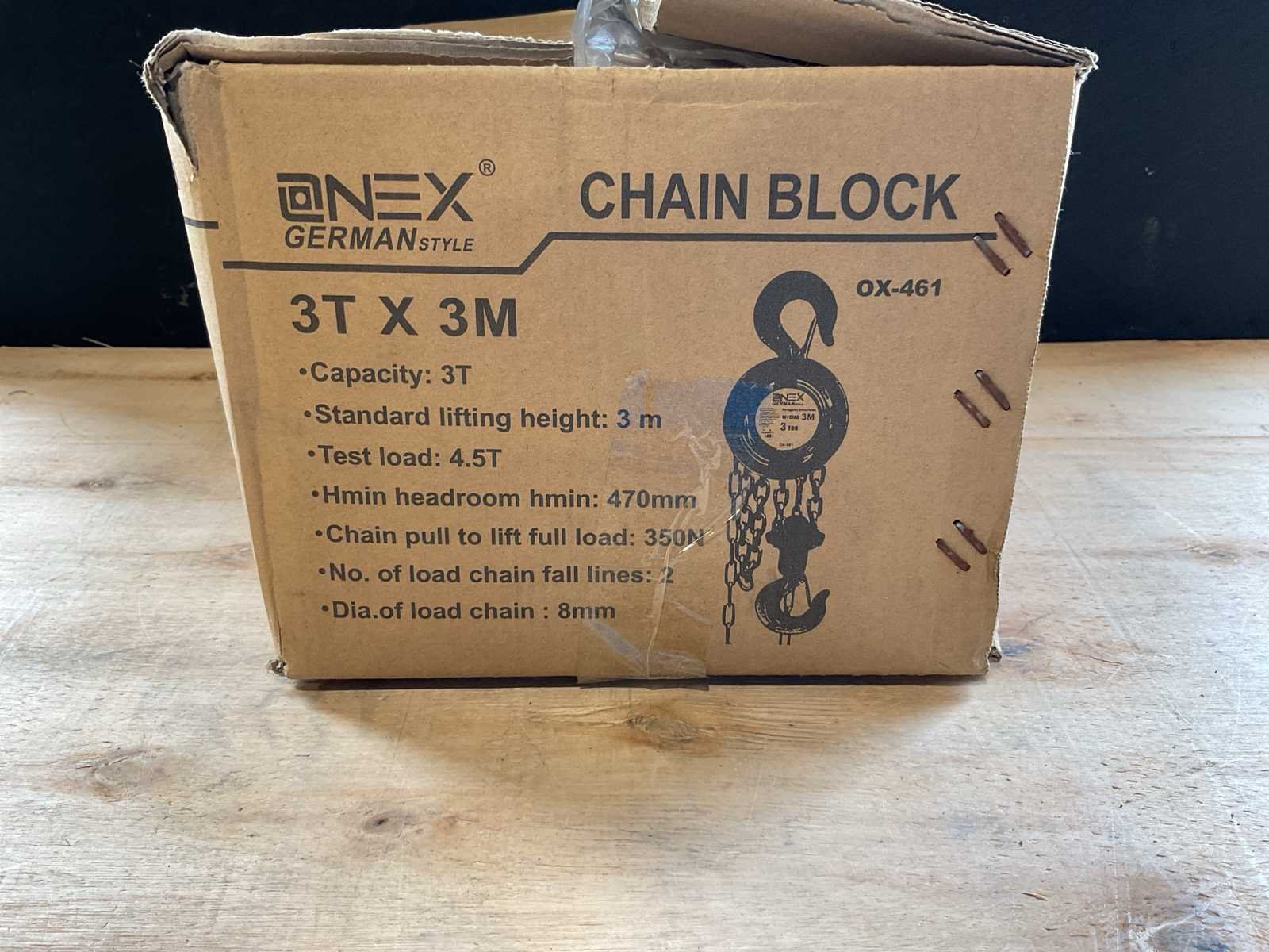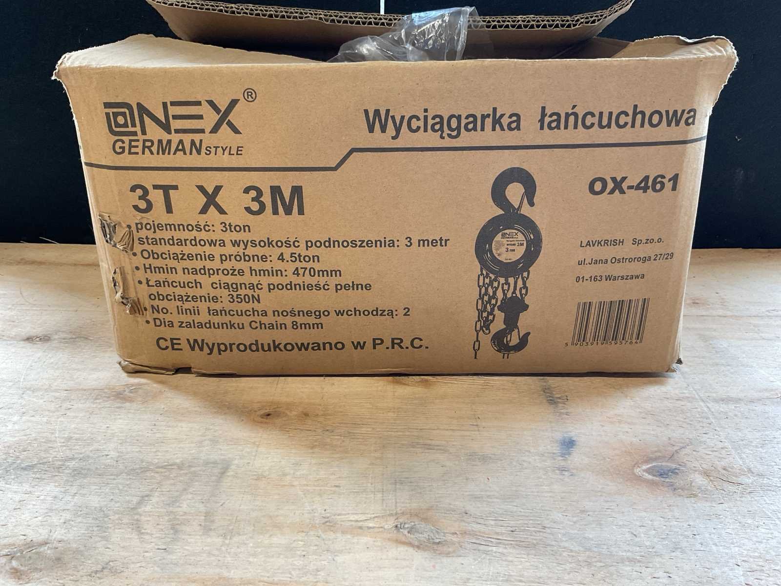 Merk: Onex German Style Type: OX-461 Bouwjaar: 2025 Hijsvermogen: 3000kg Max. hefhoogte: 3m Eigen gewicht: 15.8kg Totale afmeting L: 340mm Totale afmeting Breedte: 230mm Totale afmeting Hoogte: 180mm