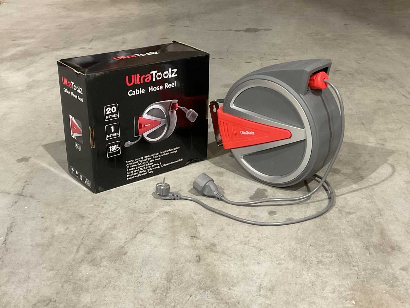 Voorzien van Voltage 230 V 12A; Kabellengte op haspel 20m; Muurbevestiging; 180° draaibaar; Lengte aansluitkabel 1 meter; Maximale stroombelasting van de kabel 1100W (opgerold), 3200W (uitgerold); Dikte kabel 3G 2.5 mm2; IP klasse IP44; Bruto gewicht 9km; verpakkingsafmeting: 14kg 395x345x335mm; Ongebruikt in doos Merk: Ultratoolz Type: 20m Bouwjaar: 2025 Aansluiting: 220V Male-male: true Male-female: true Op haspel: true Lengte: 20m