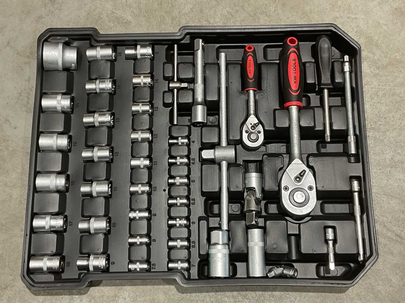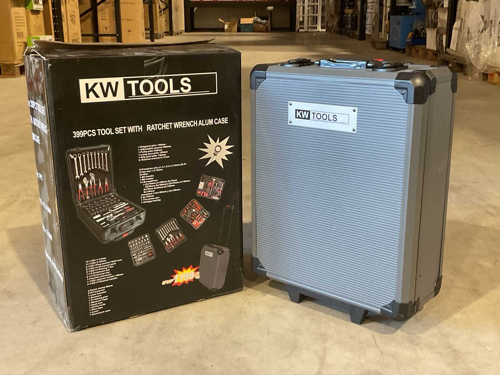 Voorzien van Schroevendraaierset; Zaag; Waterpas; Hamer; Bitset; Inbussleutels; Spanningsmeter; Handgereedschap; Spijkers; pluggen; Aluminium Koffer; Telescoop handgreep; wielen; ongebruikt in doos Merk: KW Tool Type: 399PCS Aluminium: true Metaal: true Met inhoud: true Afmeting l: 38.5mm Afmeting b: 20.5mm Afmeting h: 52mm Eigen gewicht: 13kg