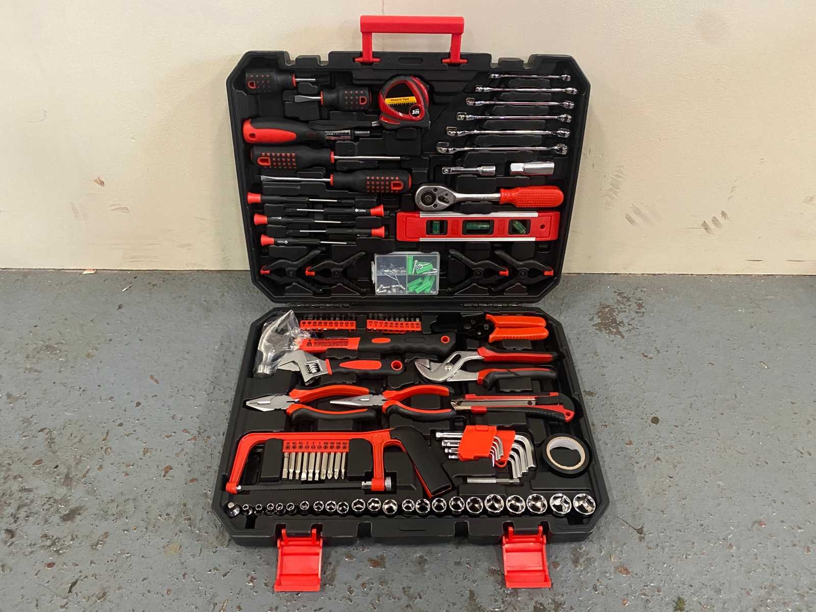 Voorzien van 156 delige gereedschapskoffer; divers professioneel gereedschap; chroom-vanadium; ongebruikt in verpakking Merk: Metallo Type: META-156W Kunststof: true Met inhoud: true