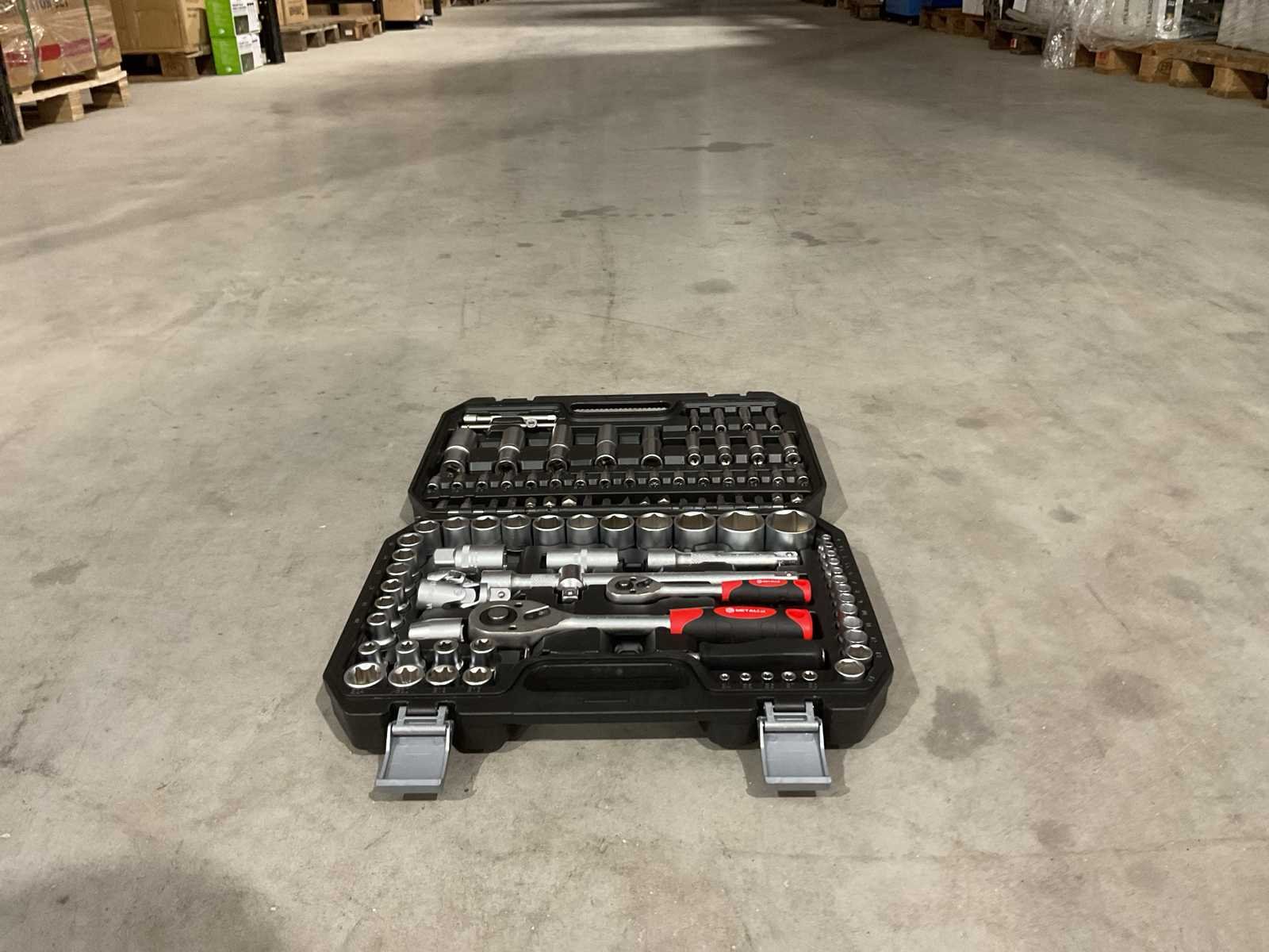 Voorzien van 1/4" Doppen 4-4.5-5-5.5-6-7-8-9-10-11-12-13-14mm; 1/4" Lange doppen 6-7-8-9-10-11-12-13mm; 1/4" Torx doppen E4-E5-E6-E7-E8; 1/4" Inbus op dop 3-4-5-6mm; 1/4" Philips op dop PH.1-PH.2; 1/4" Pozidriv op dop PZ.1-PZ.2 1/4" Platte bit op dop 4-5.5-6.5mm; 1/4" Torx op dop T8-T10-T15-T20-T25-T27-T30; 1/4" Ratel 72 tanden Quick release; 1/4" Verlengstukken 50-100mm; 1/4" Kniegewricht; 1/4'' T Hendel; 1/4" Spinner; 1/2" Doppen 10-11-12-13-14-15-16-17-18-19-20-21-22-24-27-30-32mm; 1/2" Lange doppen 14-15-17-19-22mm; 1/2" Torx doppen E10-E11-E12-E14-E16-E18-E20-E24; 1/2" Inbus bitten 7-8-10-12-14mm; 1/2" Philips bitten PH.3-PH.4; 1/2" Pozidriv bitten PZ.3-PZ.4; 1/2" Platte bitten 8-10-12mm; 1/2" Torx bitten T40-T45-T50-T55-T60; 1/2" Bit houder; 1/2" Ratel 72 tanden Quick release; 1/2" Verlengstukken 125-250mm; 1/2" Bougiedoppen 16-21mm; 1/2" Kniegewricht; Inbus L-sleutels 1.5-2-2.5mm; Ongebruikt in doos (Transport Afmeting 380 x 80 x 290, Gewicht 6.52kg) Merk: Metallo Met koffer: true Delig: 108 Type: META-108W Bouwjaar: 2025