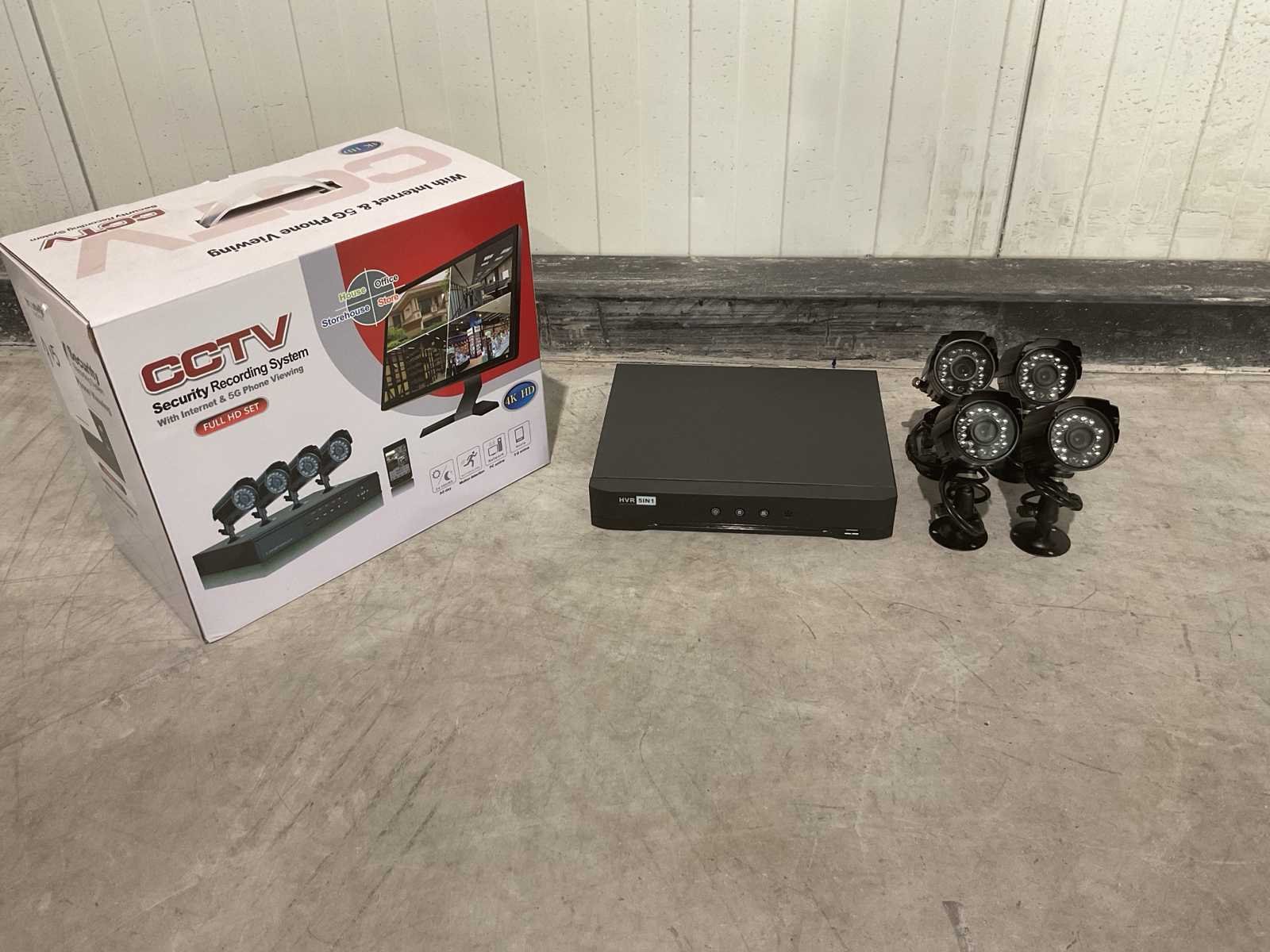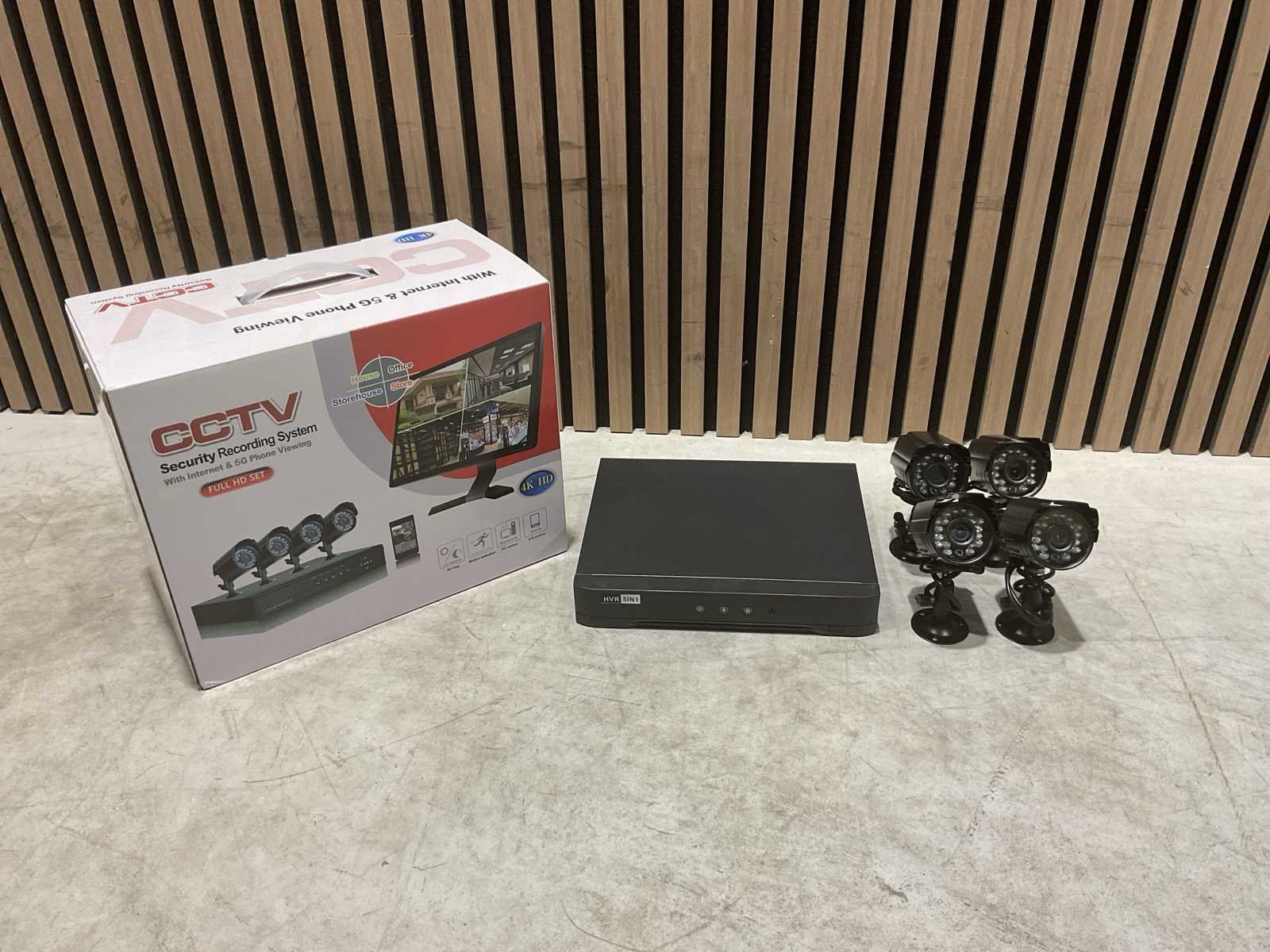 Voorzien van 4 camera’s; bewegingssensor; DVR; Resolutie VGA 1280X1024; 4 kabels 10mtr kabel; 2 x power adapter; 1 x muis; 2 x usb poorten; 1 x SATA harde schijf slot; netwerk aansluiting rj45; DC12V; video input: 4CH BNC; Video-output: 1x VGA, 1x CVBS, 1x HDMI; Audio input: 2 kanaal RCA; Audio output: 1ch RCA; 3.6 mm lens; kijkhoek: 60 graden; Nachtzicht: LED IR, 15M range; ongebruikt in doos Merk: CCTV Model: Security Recording system Product type: With internet & 5G phone viewing Kleur: Zwart Wifi: true Gewicht: 3kg Lengte: 34cm Breedte: 18cm Hoogte: 27cm