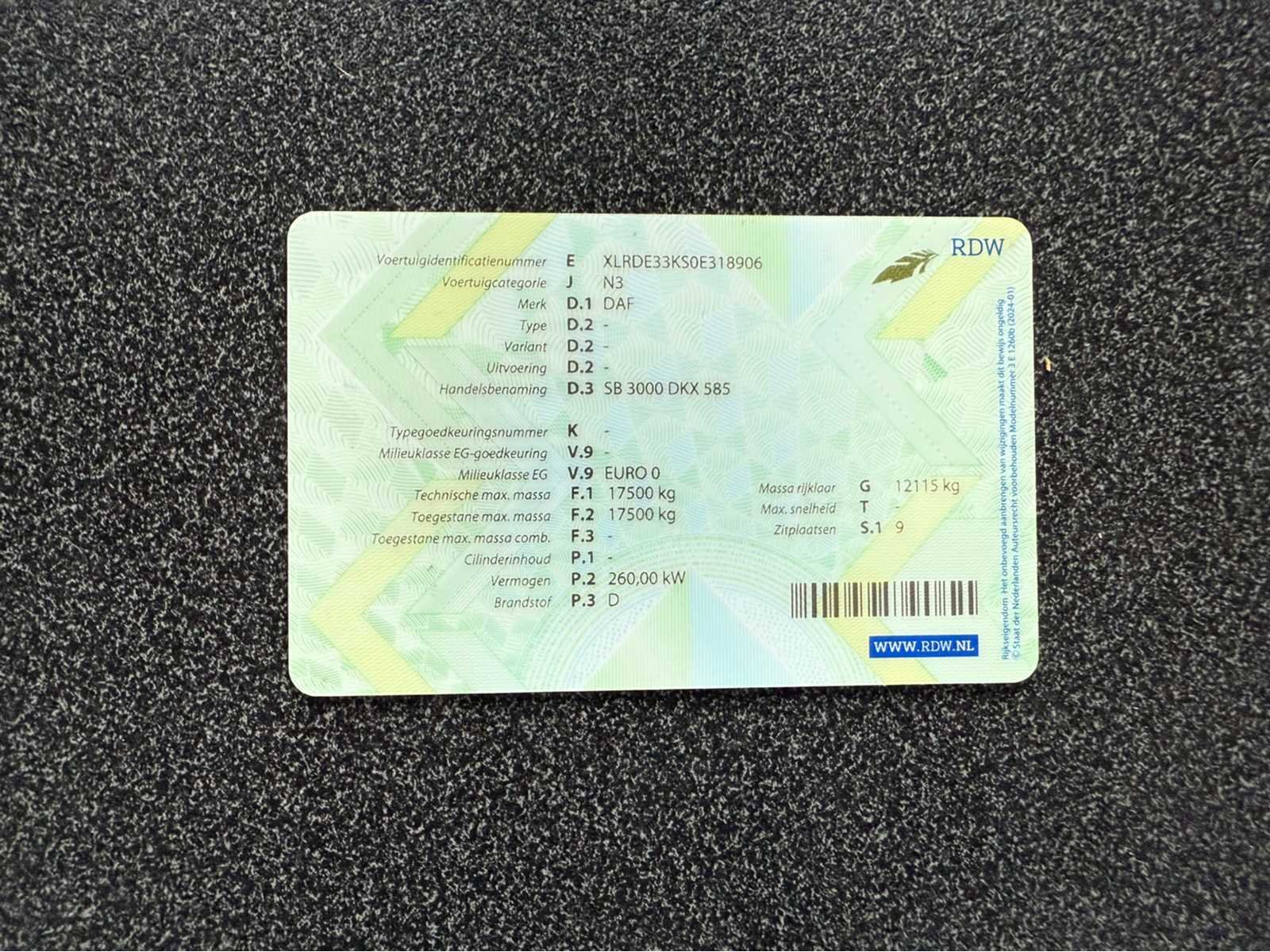 Achterin zit lift voor compacte auto, klep werkt op moment niet. Kenteken: VD-04-LL Merk: Daf Model: ATI Type: SB 3000 Aantal zitplaatsen: 9 Bruto BPM (NL): 0€ Datum eerste toelating (NL): 1989-01-05 Datum eerste toelating: 1989-01-05 APK vervaldatum: 2026-03-29 Bouwjaar: 1989 Afgelezen kilometerstand: 70337km Vermogen (kW): 260kW Vermogen (pk): 354hp Emissieklasse: 0 Brandstof: diesel Kleur: niet van toepassing Carrosserie: servicewagen Ledig gewicht: 11980 Self drive export possible : true