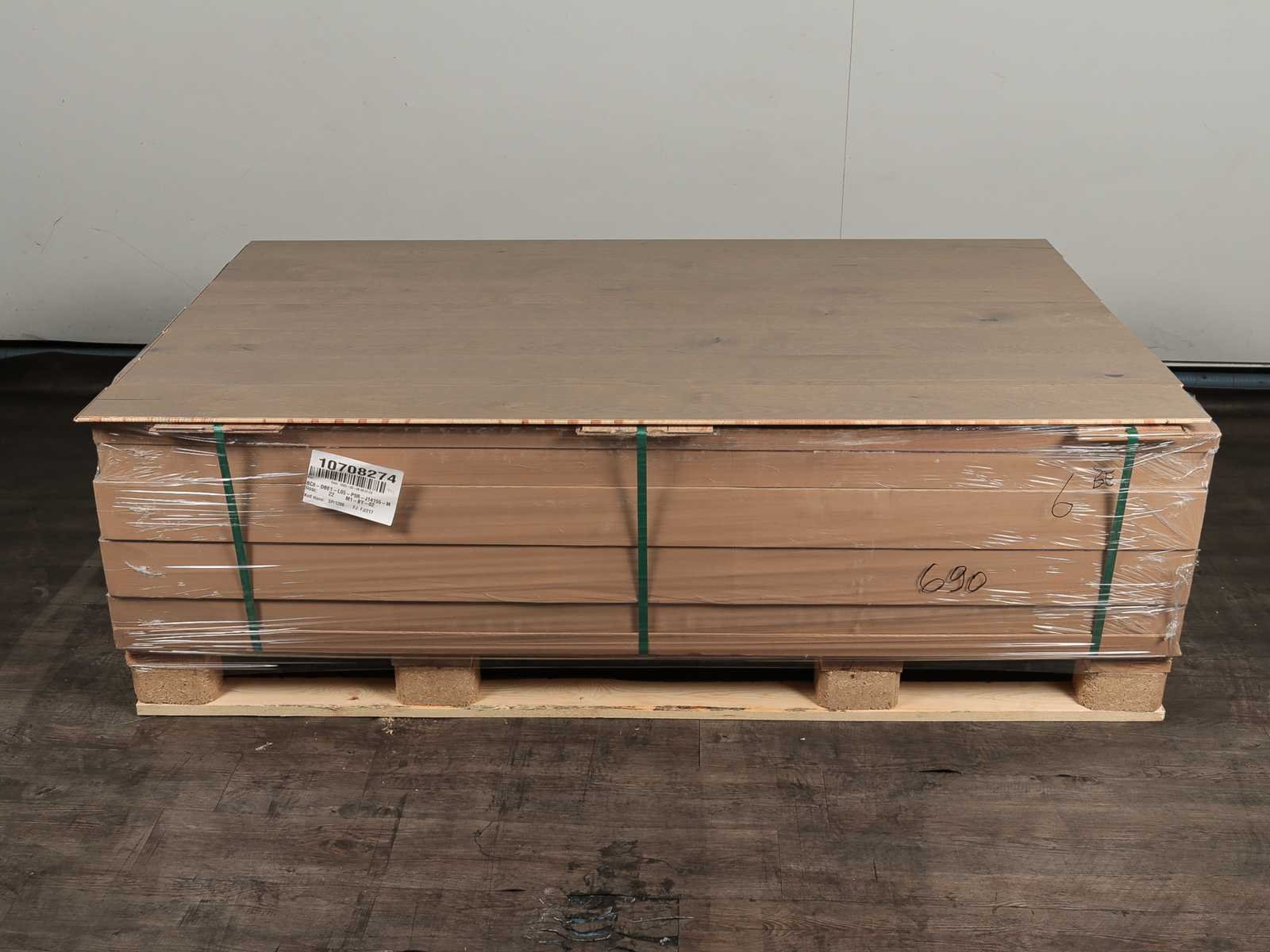 Gemakkelijk te leggen wegens 5G clicksysteem, geschikt voor alle soorten vloer en koelverwarmingen, kwaliteits parketvloer, vloer is van hoogwaardig Europees eiken hout, kant en klaar behandeld, dikte 14 mm, toplaag 3 mm, 21 pakken a 1,95 m2 Within 14 days Merk: Ambiance Product type: Parket Oppervlakte: 40m² Geschikt voor vloerverwarming: Ja V-groef: Ja Afwerking: Mat gelakt, geborsteld, met v-groef Aantal m² per verpakking: 1.95m² Kleur: Dark grey oak 690 Gewicht: 335kg Lengte: 1800mm Breedte: 155mm Materiaal: Eiken multiplank
