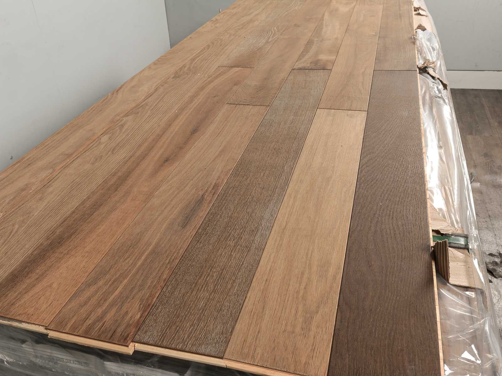 Mes en groef systeem, geschikt voor alle soorten vloer en koelverwarmingen, kwaliteits parketvloer, de planken bevatten korte en lange delen, vloer is van hoogwaardig Europees eiken hout, dikte 19 mm, 53 pakken a 1,117 m2 Within 14 days Merk: Select floor Product type: Parket Oppervlakte: 59m² Geschikt voor vloerverwarming: Ja V-groef: Ja Afwerking: Geolied, geborsteld, met v-groef Aantal m² per verpakking: 1.117m² Kleur: Mixed brown oak Gewicht: 1050kg Lengte: 2200mm Breedte: 127mm Materiaal: Eiken multiplank