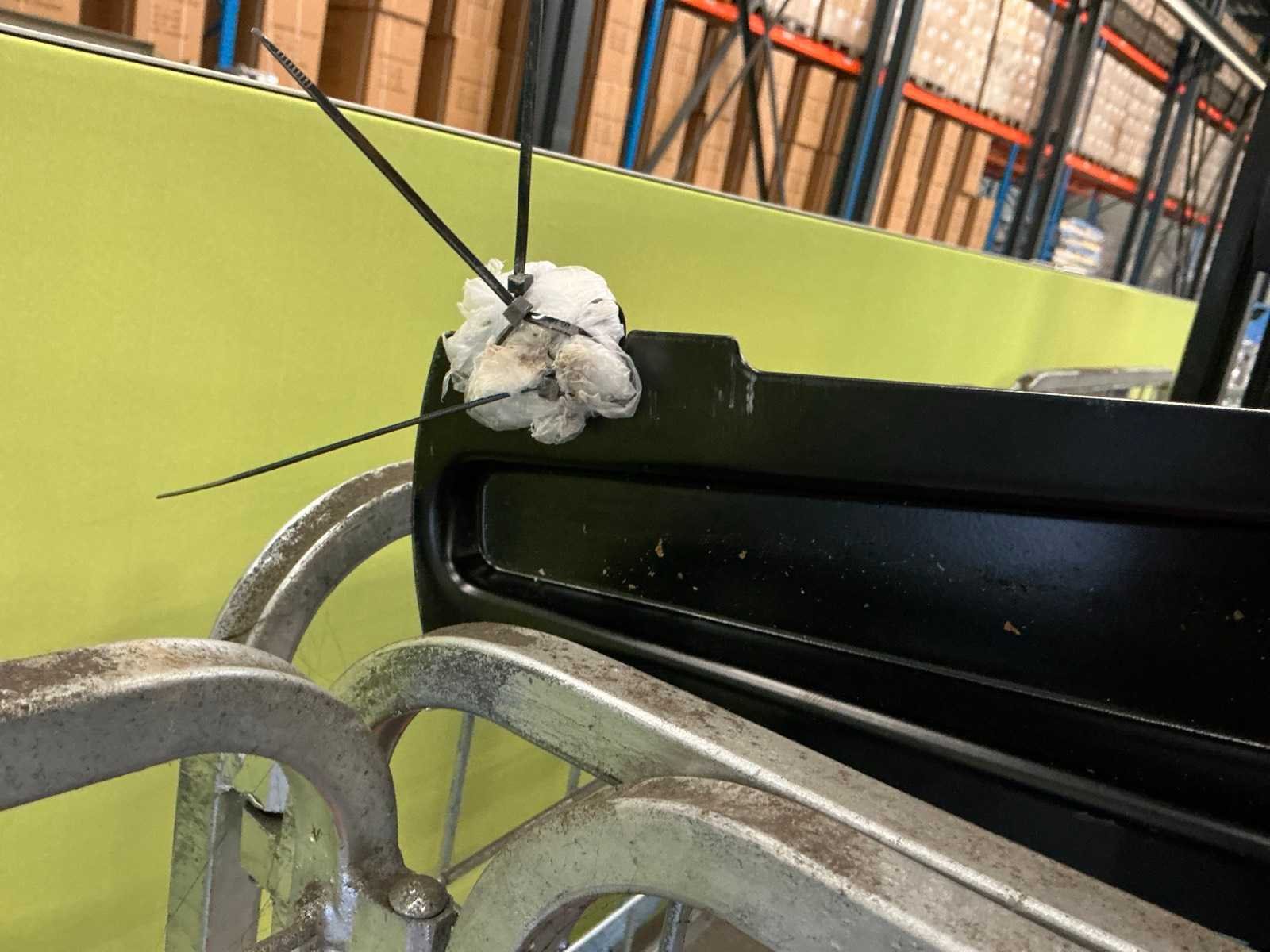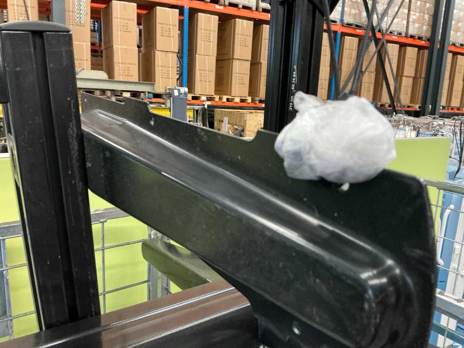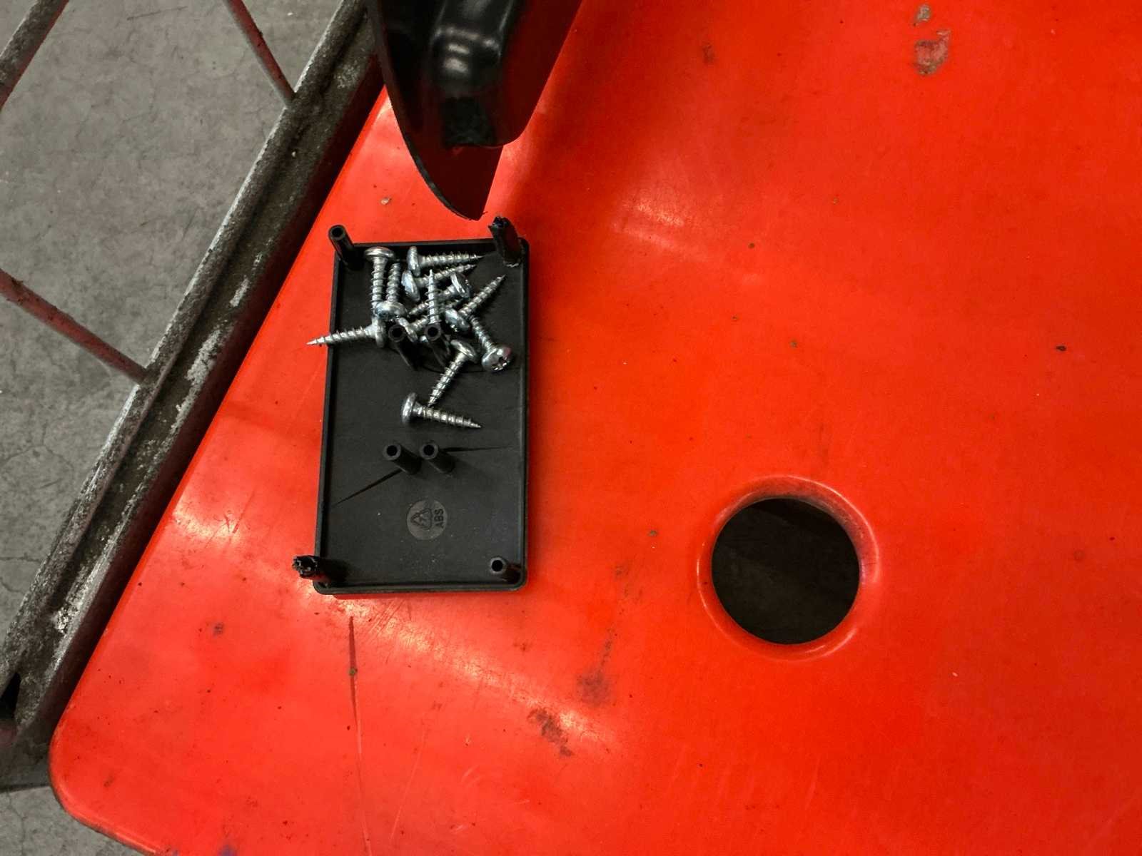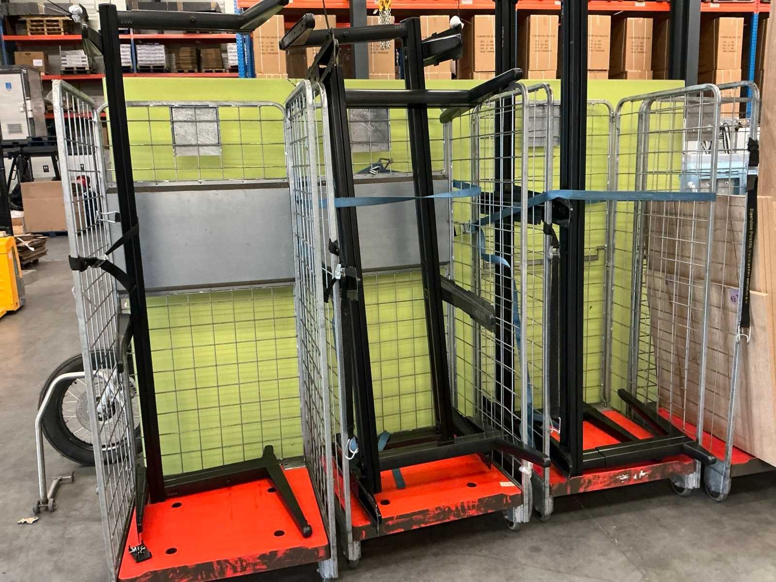 Bestaande uit 5 onderstellen en 7 bladen. Langste blad is 240cm lang en 120cm breed, de 3 kleine bladen zijn 120cm x 80cm, kleinste blad is 80cm x 80cm, blad met ronding erin is 120cm x120cm. Er staan op de tafel stickers met nummers en afbeeldingen van de tafelonderstellen