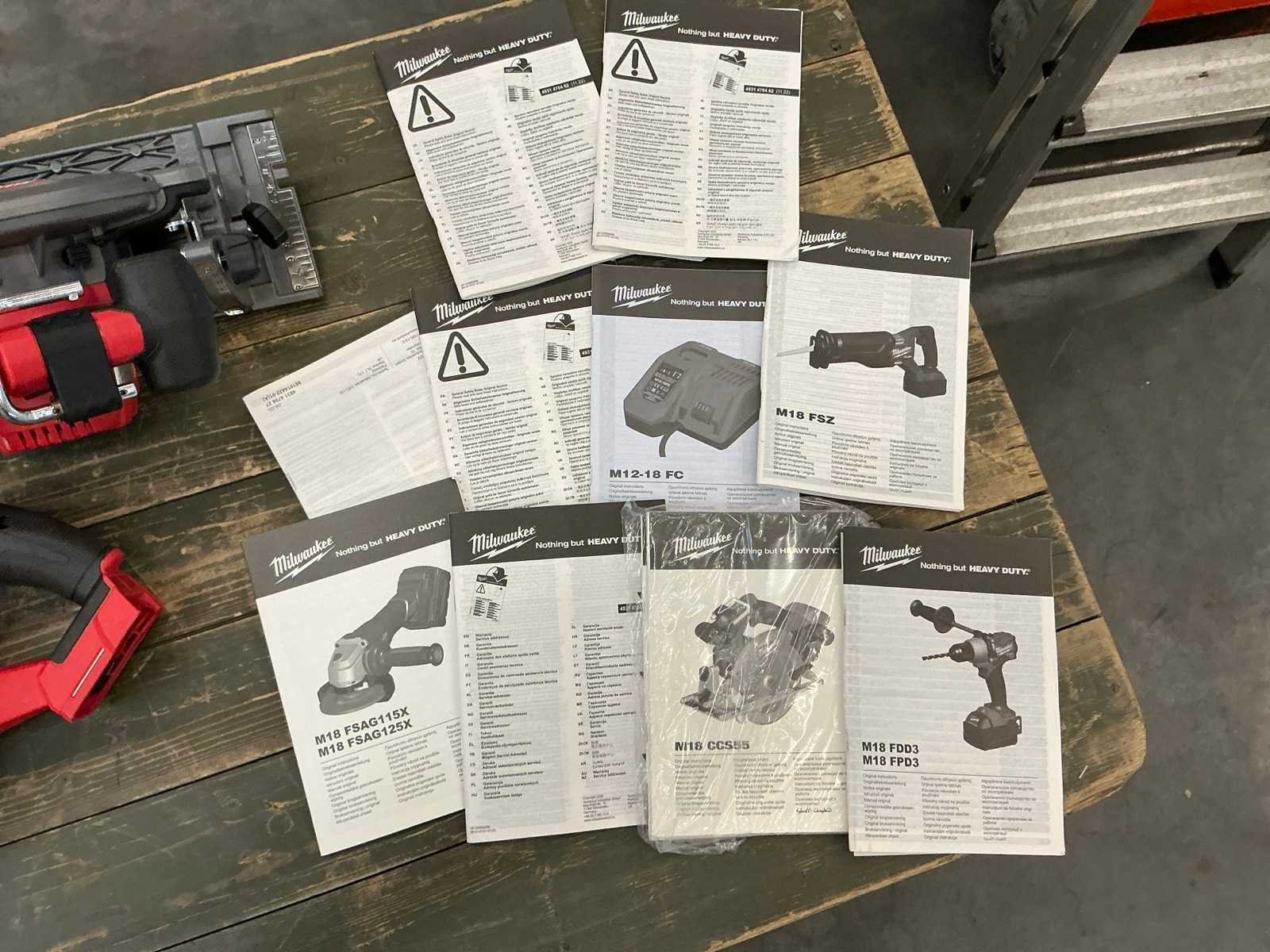 Sawzall Recipozaag, cirkelzaag, haakse slijper, hex slagschroevendraaier, klopboorschroef machine, zaklamp. Merk: Milwaukee Type: Fuel