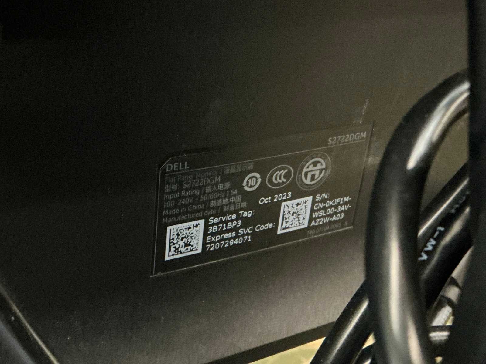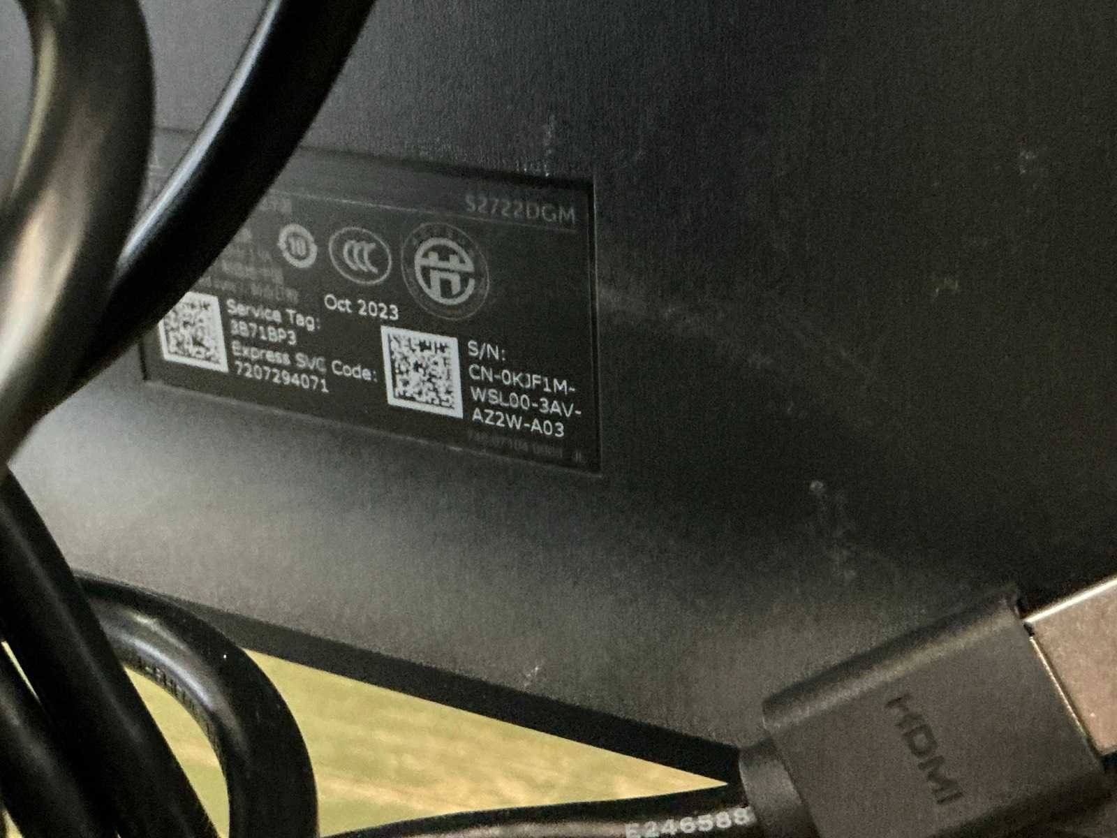 Doos met toetsenbord en muis (1x), verlengsnoer(2x), laptopstandaard (1x), Merk: DELL Type: S2722DGM Bouwjaar: 2023 Serienummer: CN-0KJF1M-WSL00-3AV-AZ2W-A03 Aansluiting: 230V Totale afmeting L: 560mm Totale afmeting Hoogte: 375mm