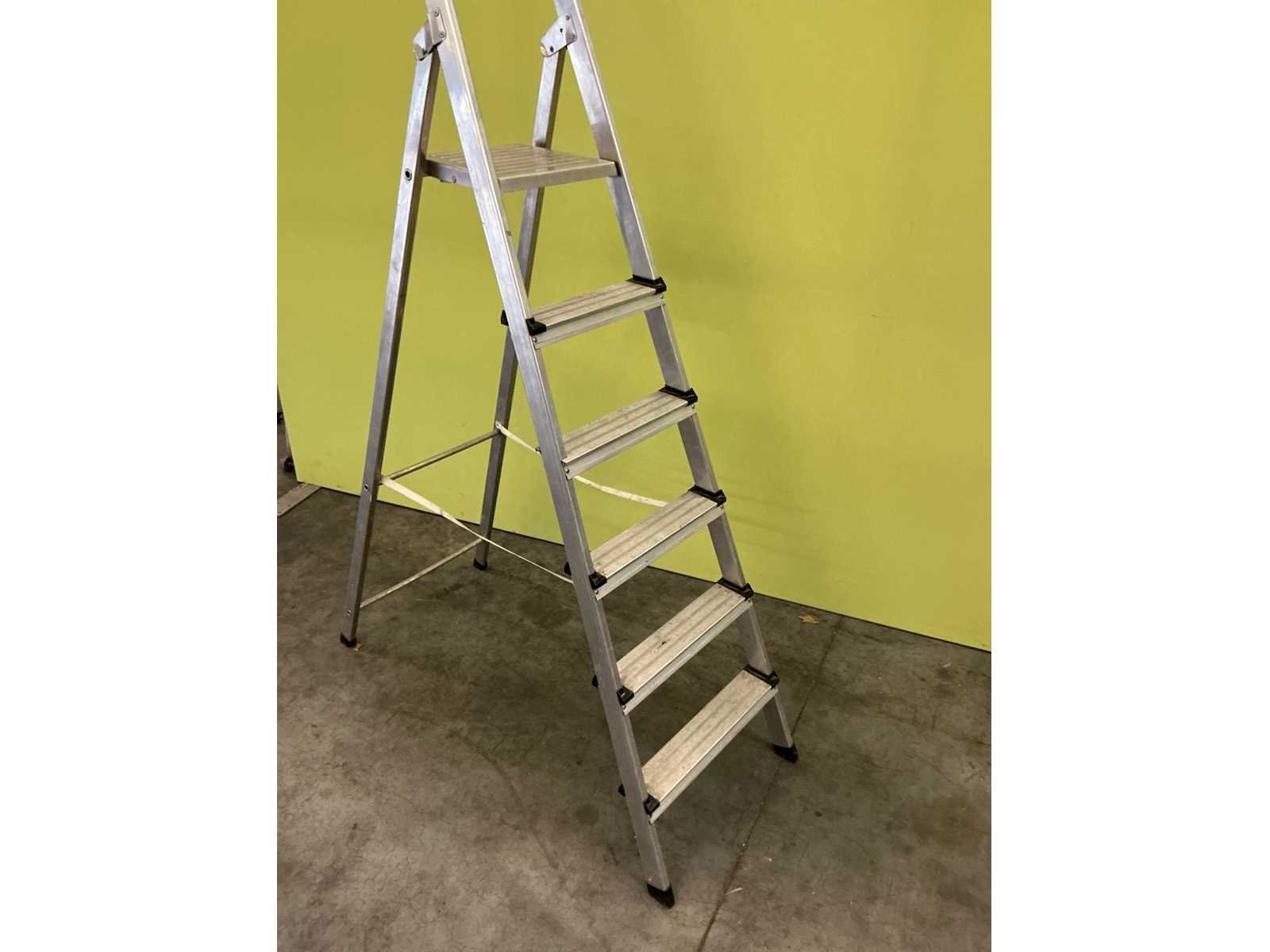 Bestaande uit ladder 6treden, bezem, hark, schop(2x)
