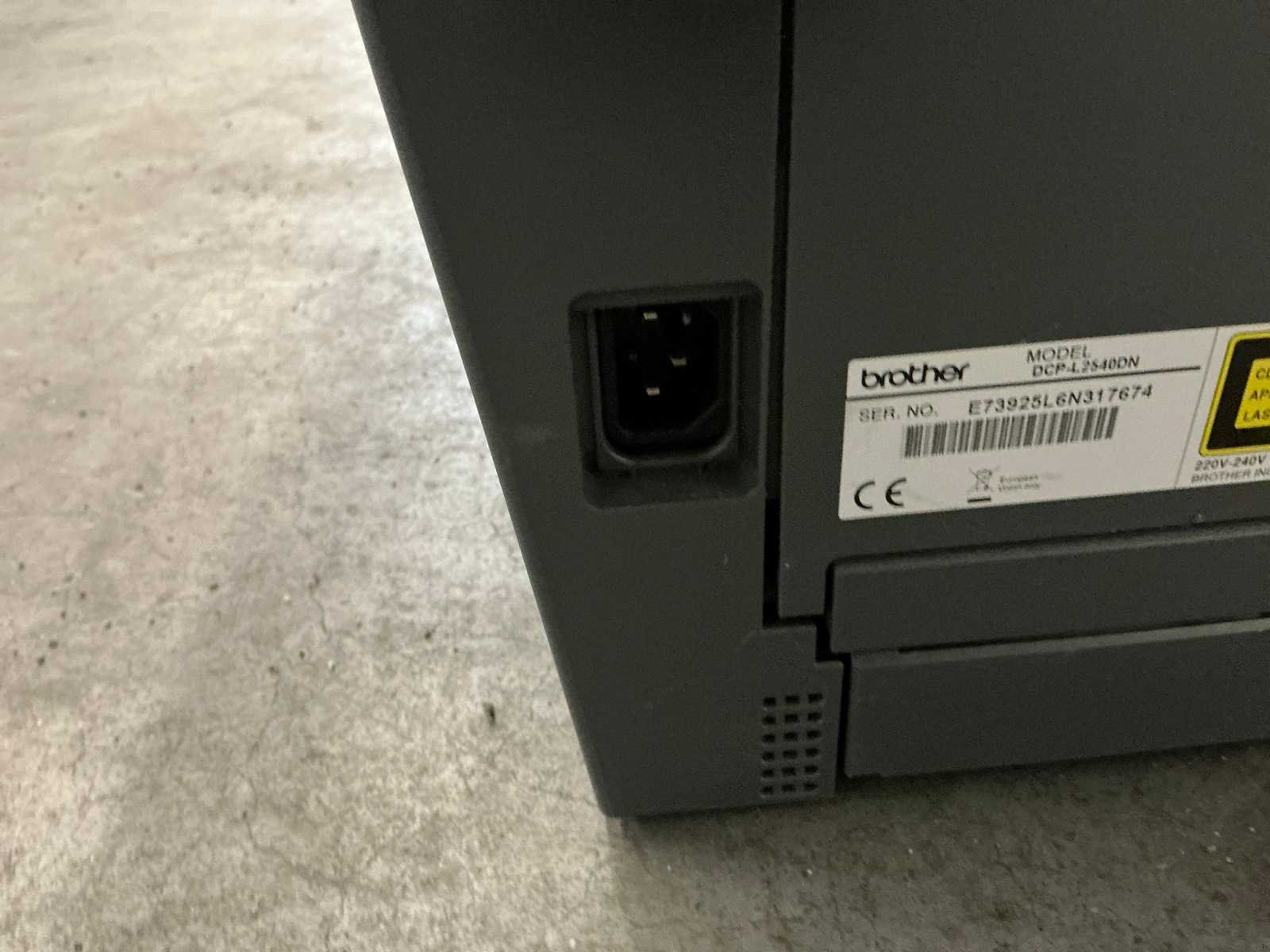 Geen voedingskabel aanwezig Merk: BROTHER Model: DCP-L2540DN Lengte: 41cm Breedte: 37cm Hoogte: 31.5cm Serienummer: E73925L6N317674