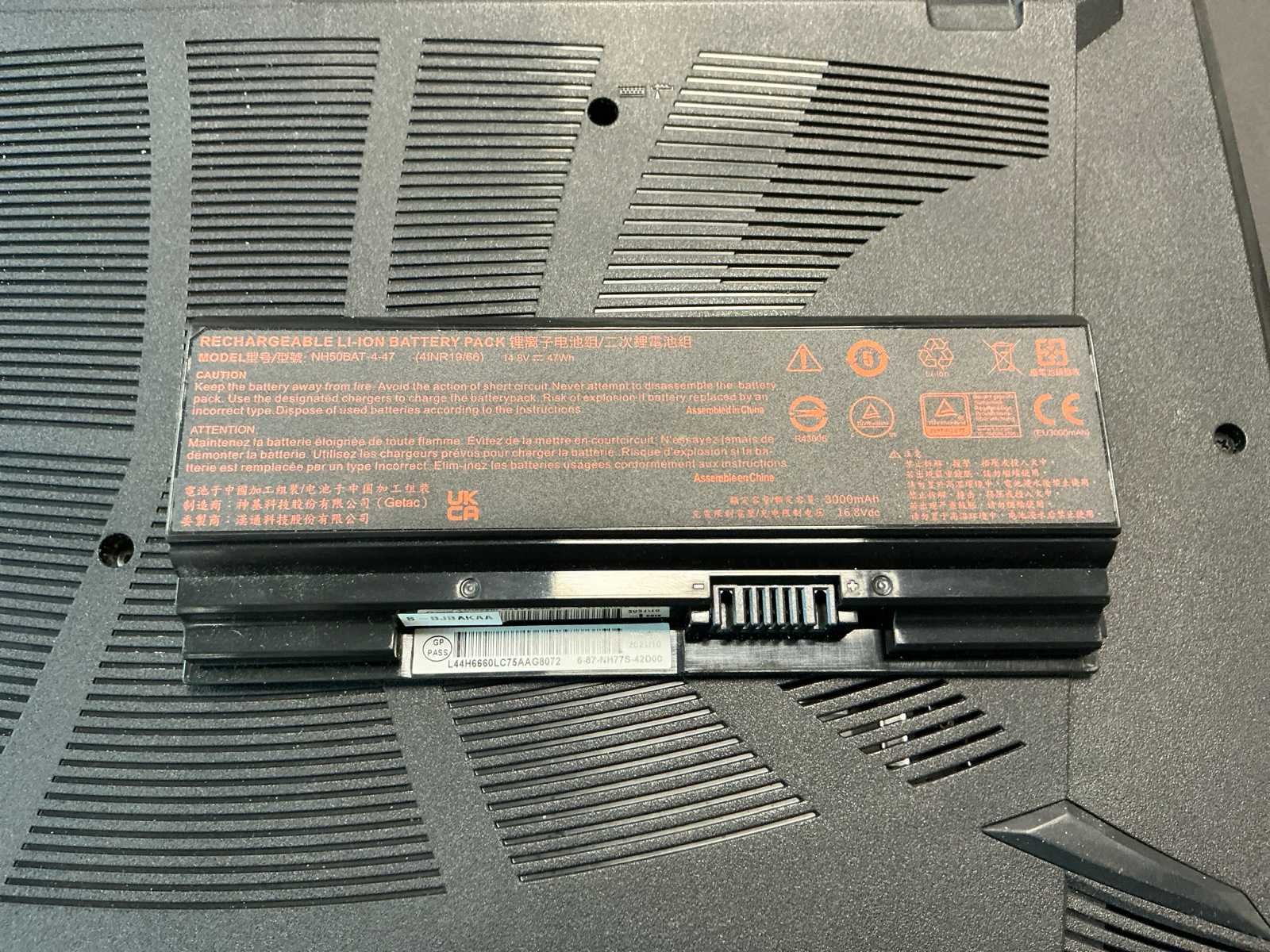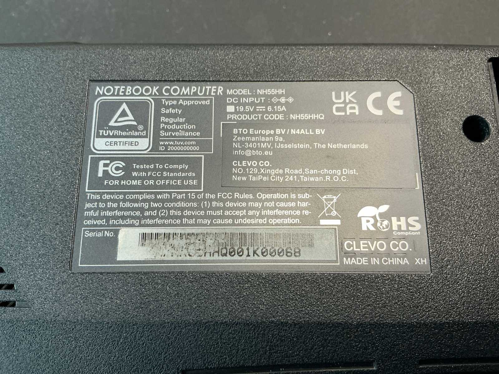 Accu ontbreekt, laatste foto is accu welke benodigd is. (Komt uit kavel 17) Merk: BTO Type: NH55HH Serienummer: NKNH55HHQ001K00068 Processor type: 11th Gen Intel(R) Core(TM) i7-11800H @ 2.30GHz,x86_64 @ 4.6GHz, logical CPUs: 16, Speed: 4600MHz RAM Geheugen Type: 64GB Type datadrager: SSD/NVME 1TB Type videokaart: GTX1650 Besturingssysteem: Geen Met adapter: true Wifi: true Bluetooth: true Webcam: true