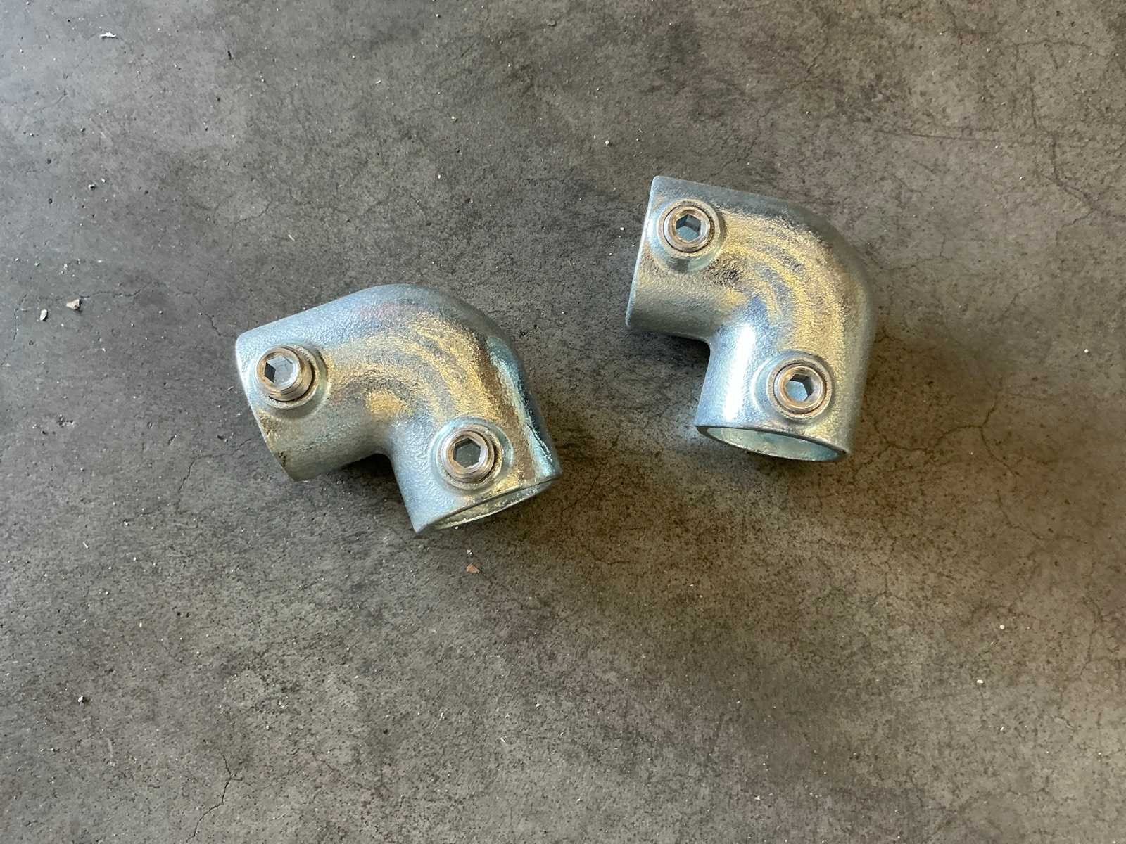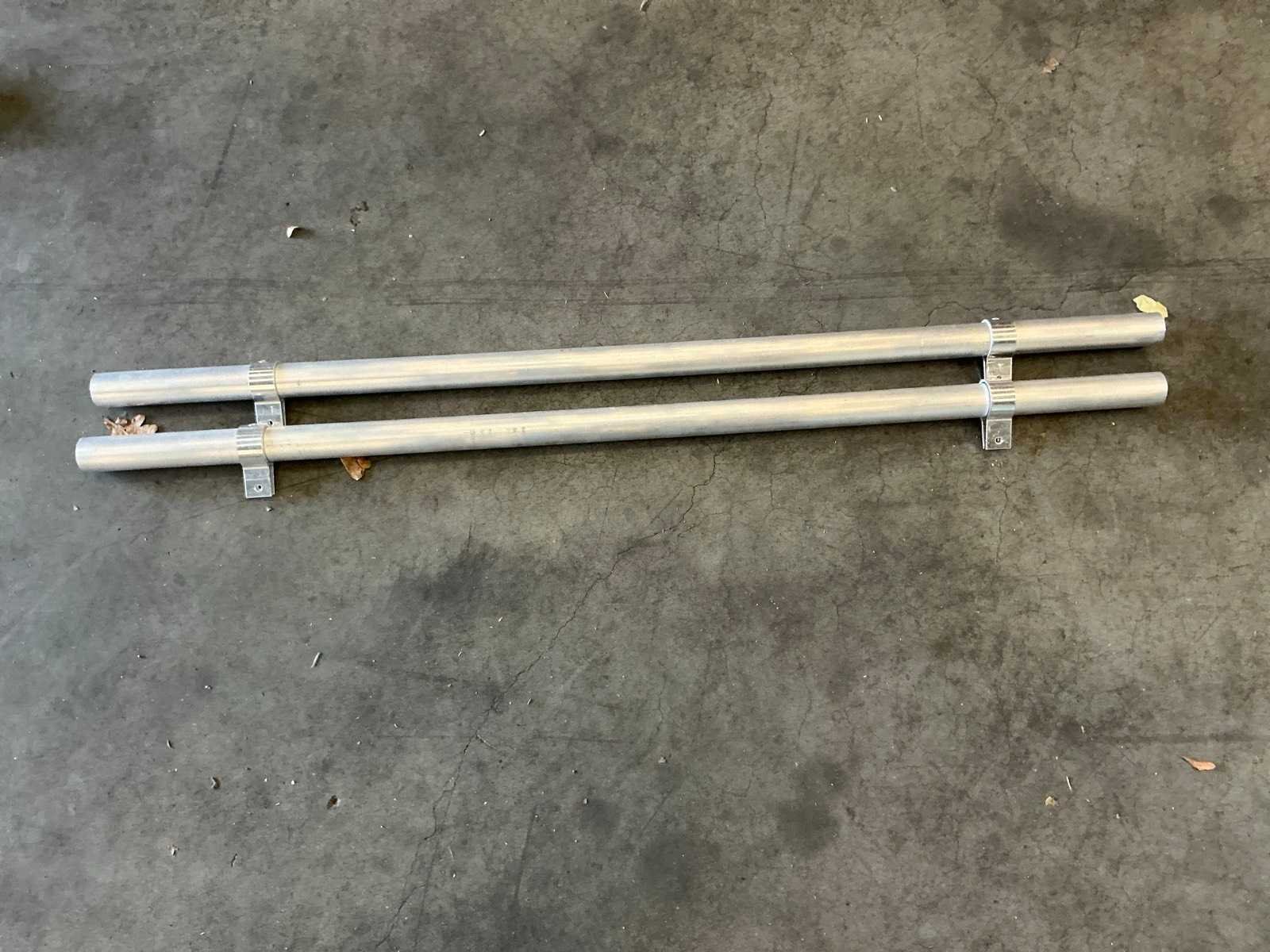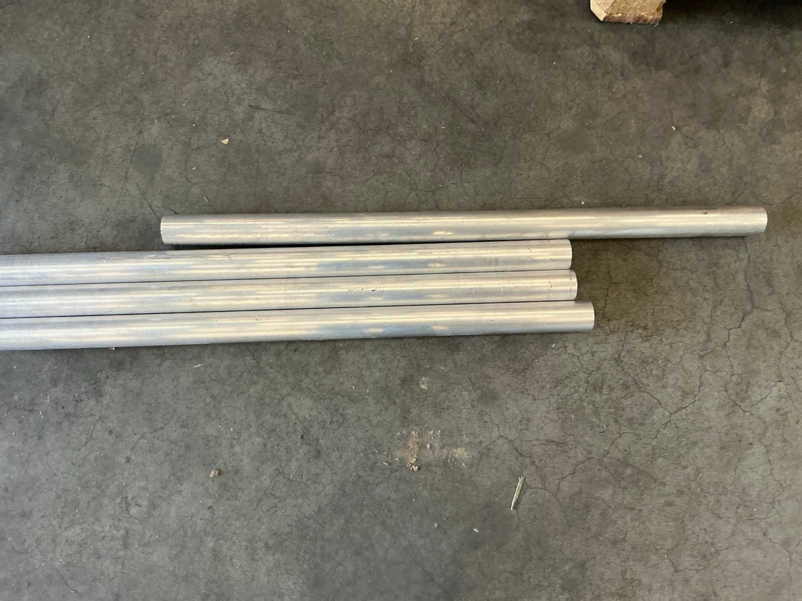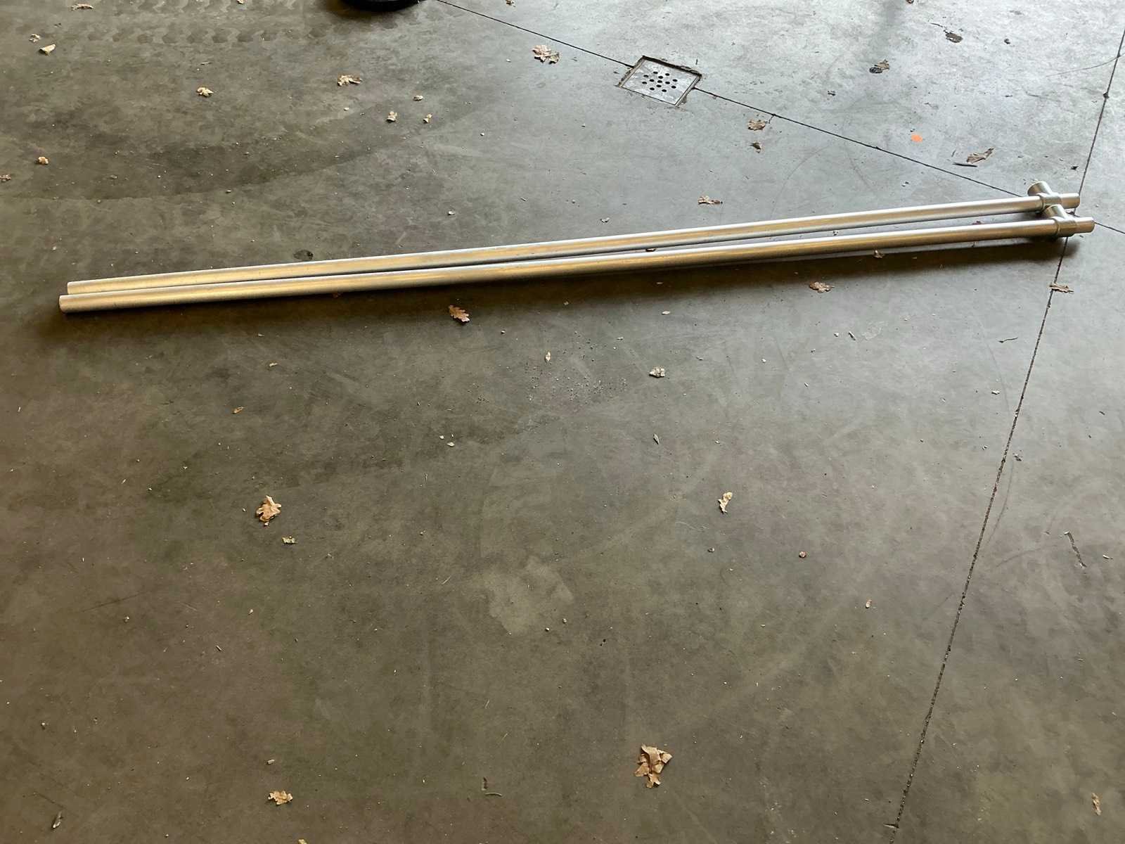Langste stuk265cm(2x), 8 buizen van 150cm, 2 losse koppelstukken, 4 kleine buizen van 80cm, 2 buizen van 130cm
