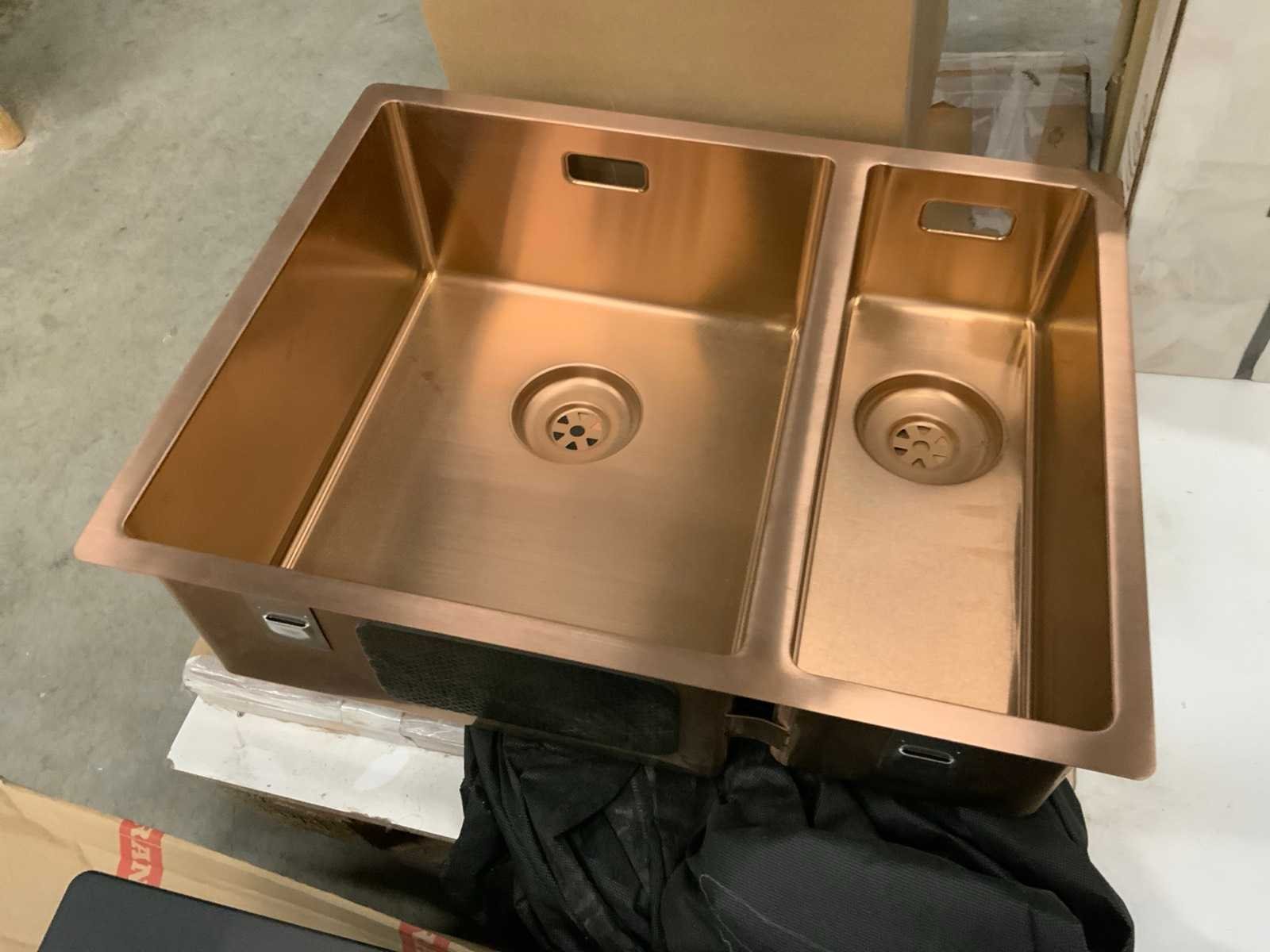 1x spoelbak zwart 56x53 cm, 1x brons 55,5x44 cm, inclusief 2x afvalemmer inbouw