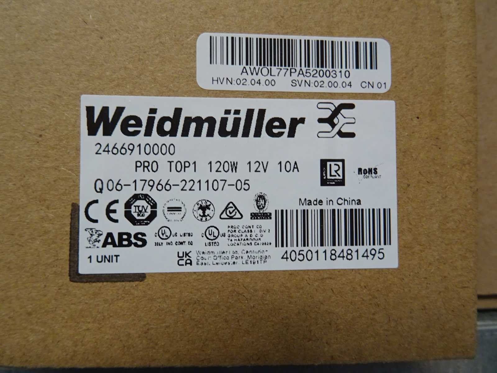 Artikelnummer: 2466910000, EAN: 4050118481495 Merk: Weidmüller Model: Pro Top1 120W 12V 10A