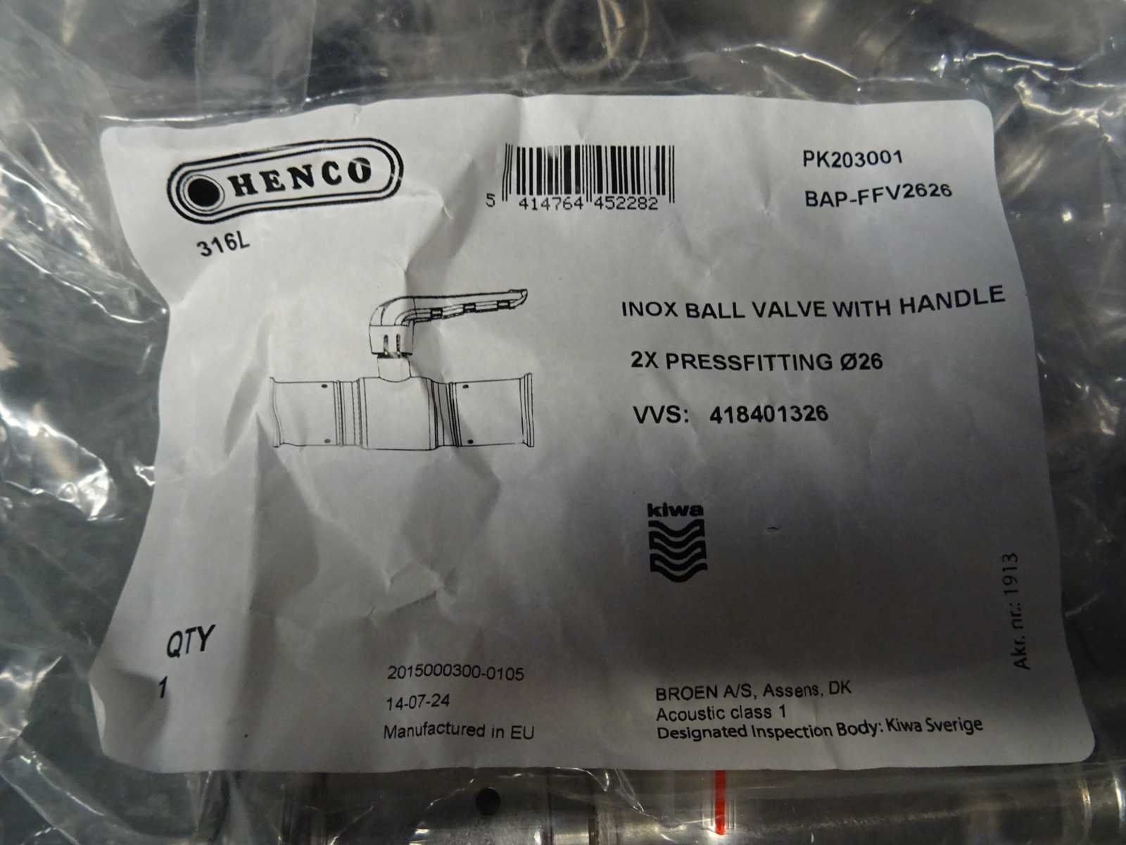 EAN: 5414764452282 Merk: Henco Type: 316L - PK203001