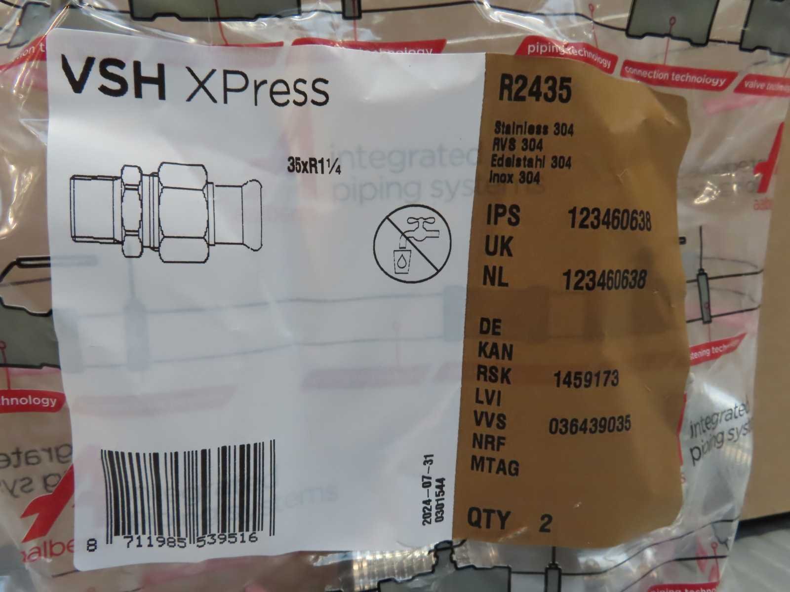 EAN: 8711985539516; SKU: 123460638; VSH XPress RVS 304L 3dl. koppeling, 35 x 1.1./4", 10 sets a 2 stuks Merk: VSH Model: Xpress 35xR1.1/4
