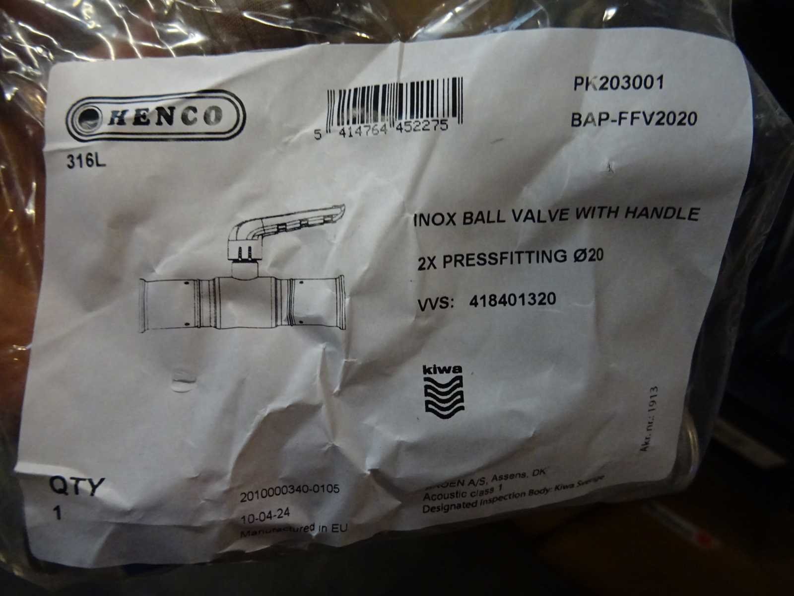 Henco - 316l - pk203001 - afsluiter (22x)