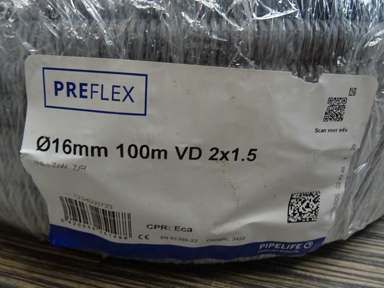 Preflex - vd 2x1,5 - voorbedrade flexbuis 100m