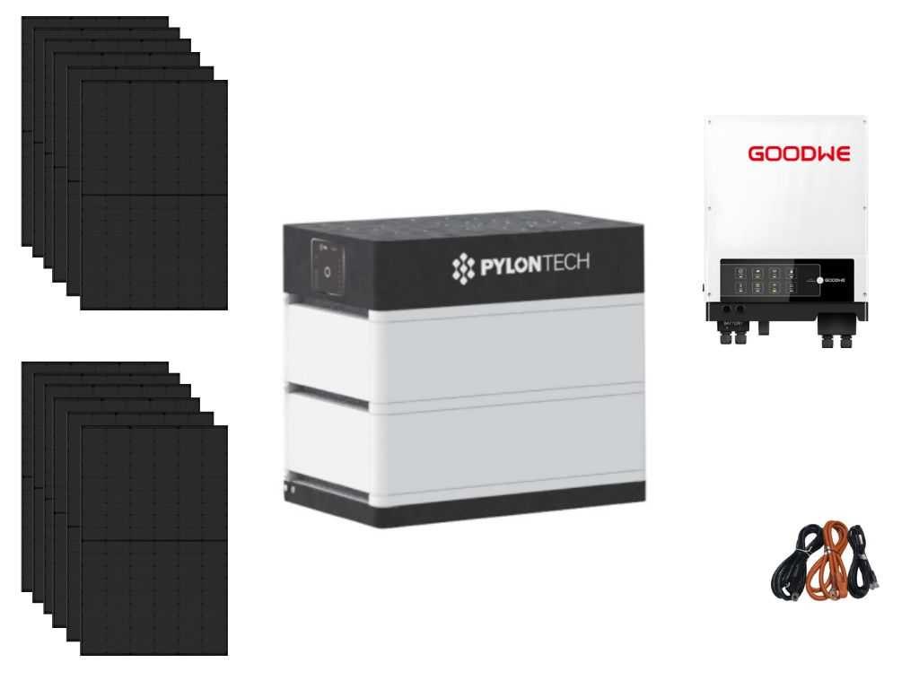 Batterijen: 2x Pylontech Li-ion Battery Force L1 (3,55kWh - 48V) + Pylontech force-L1 BMS (totaal 7,1 kWh) zonnepanelen: Jinko JKM440N-54HL4R-B (440 wp) Full Black omvormer: GoodWe 5048D- hybride omvormer inclusief GM1000 en meetspoelen (1-fase) totaal vermogen: 5280 Wp vermogen: 440 Wp per zonnepaneel conditie: nieuw Merk: Jinko Solar Type: JKM440N-54HL4R-B Max. dc power: 440W Eigen gewicht: 22kg Totale afmeting L: 1762mm Totale afmeting Breedte: 1134mm Totale afmeting Hoogte: 30mm