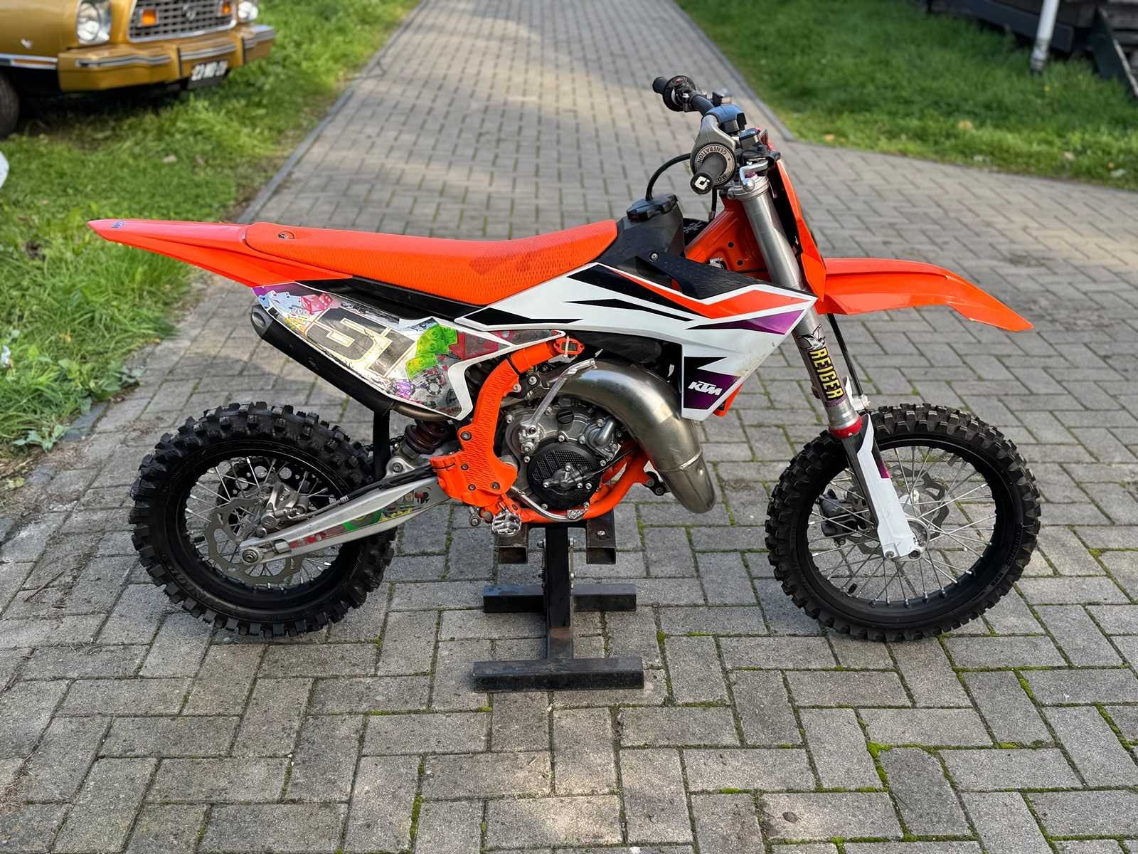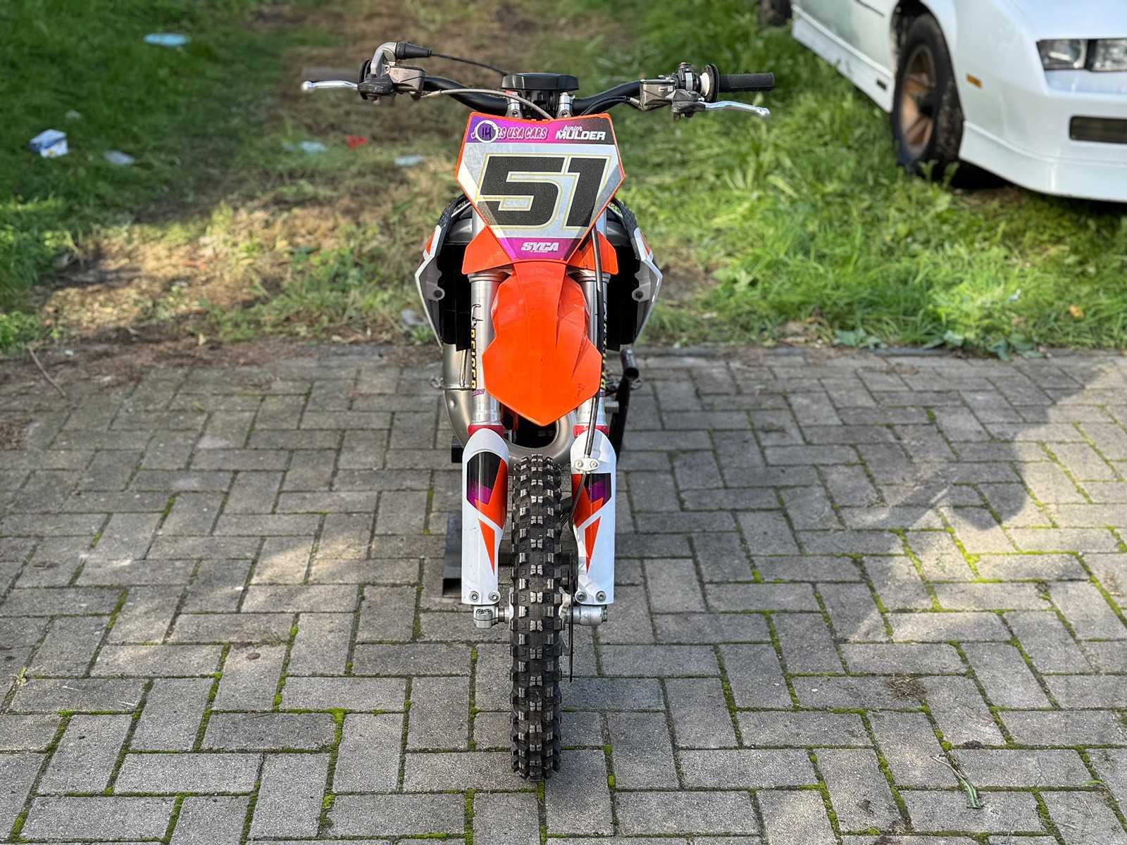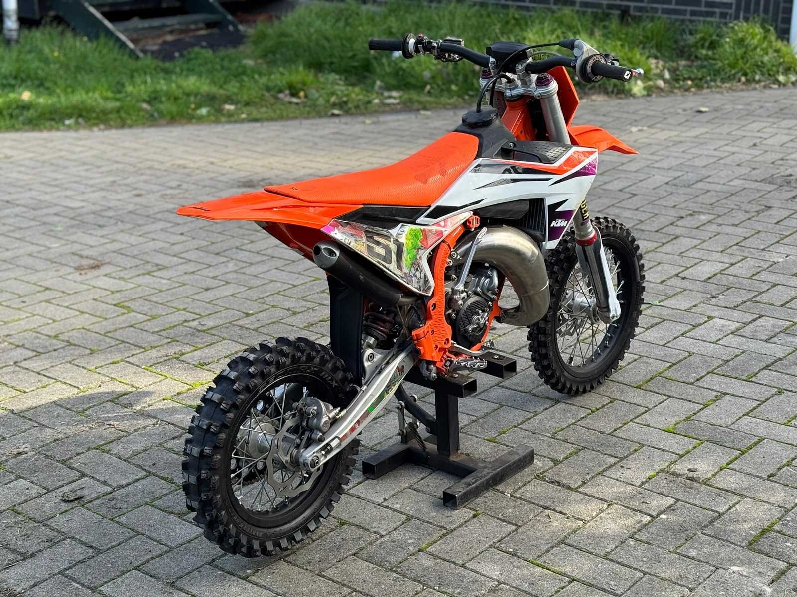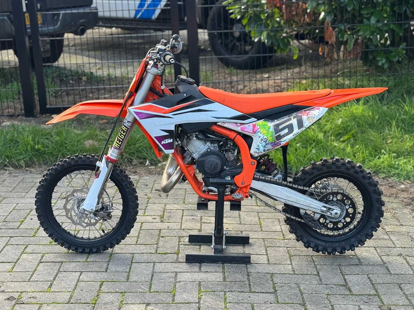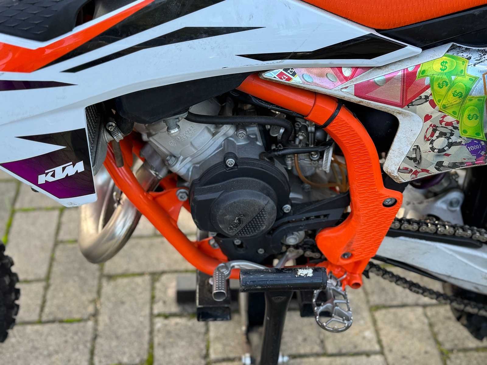 Start, loopt, rijdt, remt en schakelt. Voorrem werkt niet/matig. 87 rij-uren. Merk: KTM SX65 Datum eerste toelating: 2024
