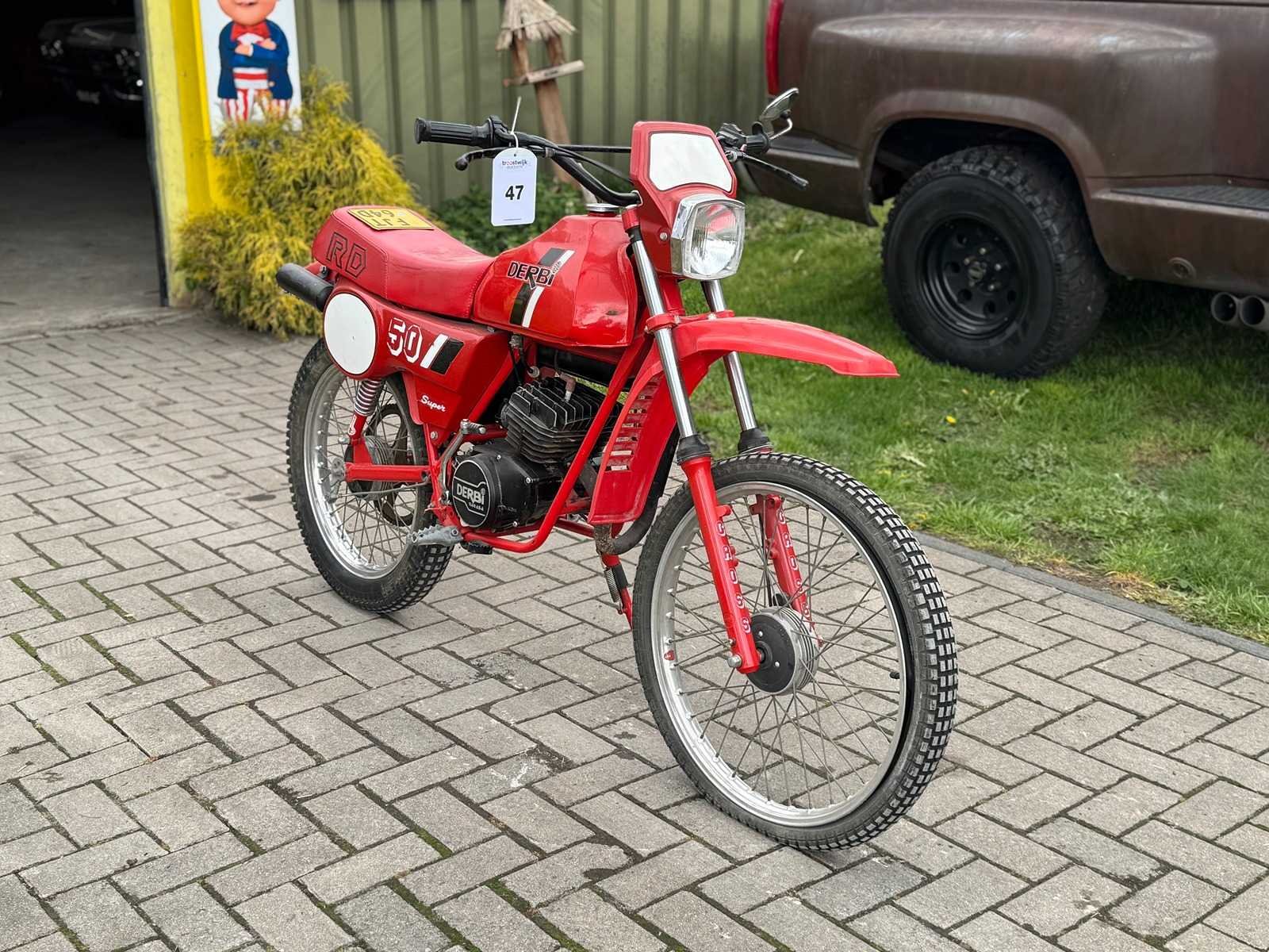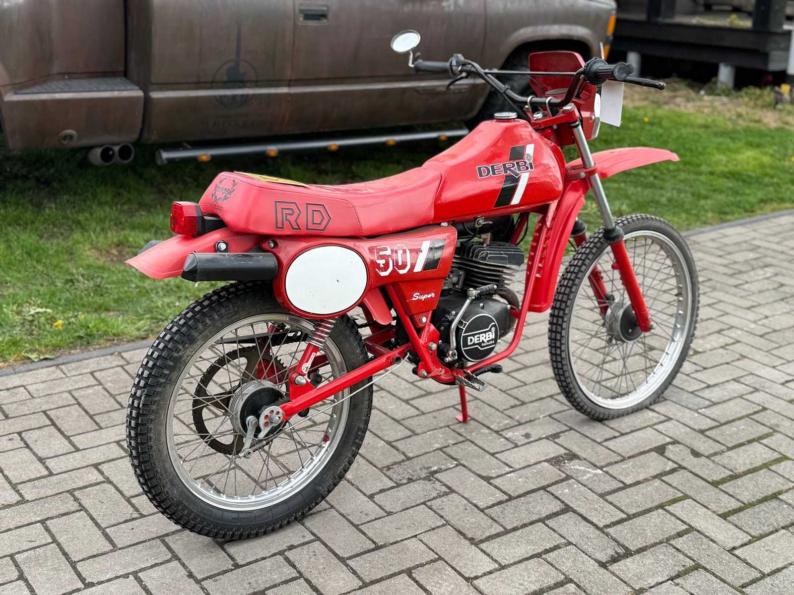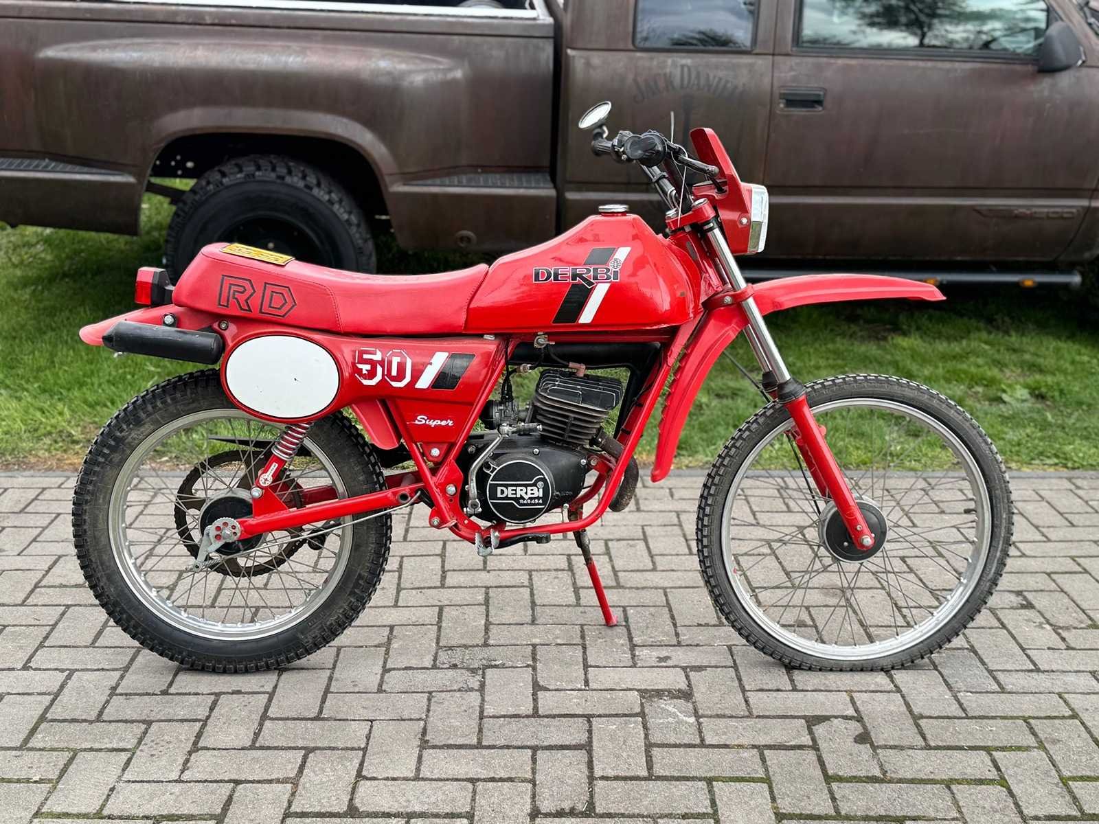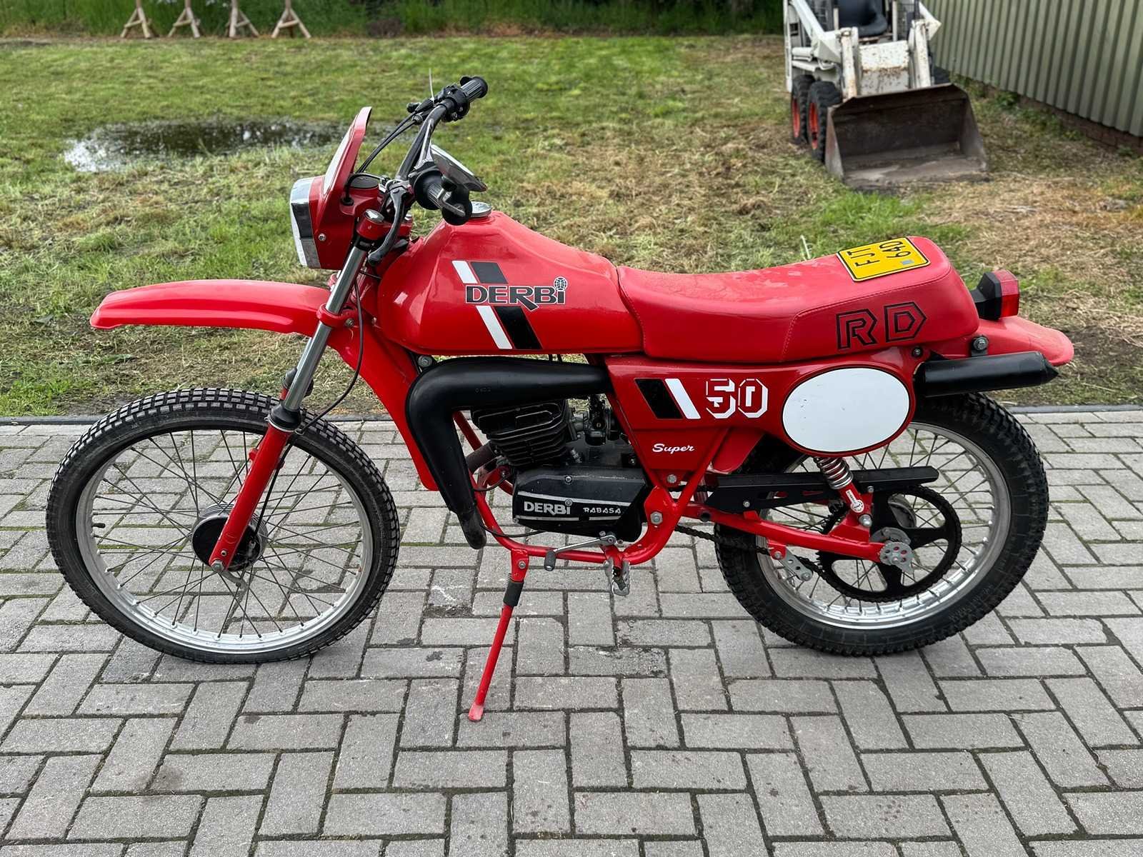 Start, loopt, rijdt, remt en schakelt. Merk: Derbi Type: Yumbo Super RD 50cc Kenteken: FJT-64-D Datum eerste toelating: 1983-06-30 Brandstof: benzine Bouwjaar: 1983 Chassisnummer: M0056684