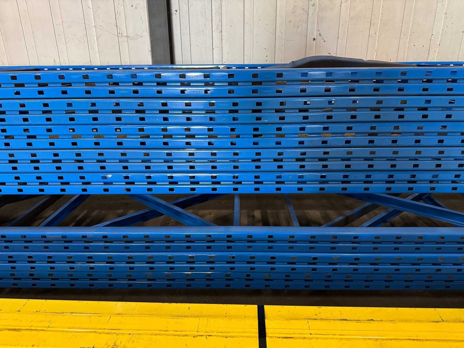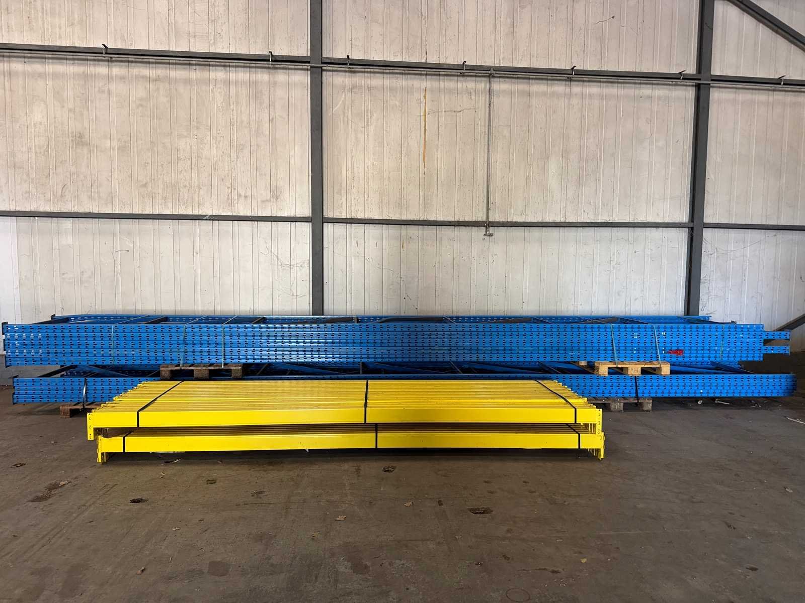 Staanders: 810x100x8cm Liggers: 400x12x5cm Merk: Redirack Type: Type S Sectie afm. b: 4000mm Sectie diepte: 1000mm Sectie afm. h: 8100mm Aantal staanders: 8 Aantal liggers: 42