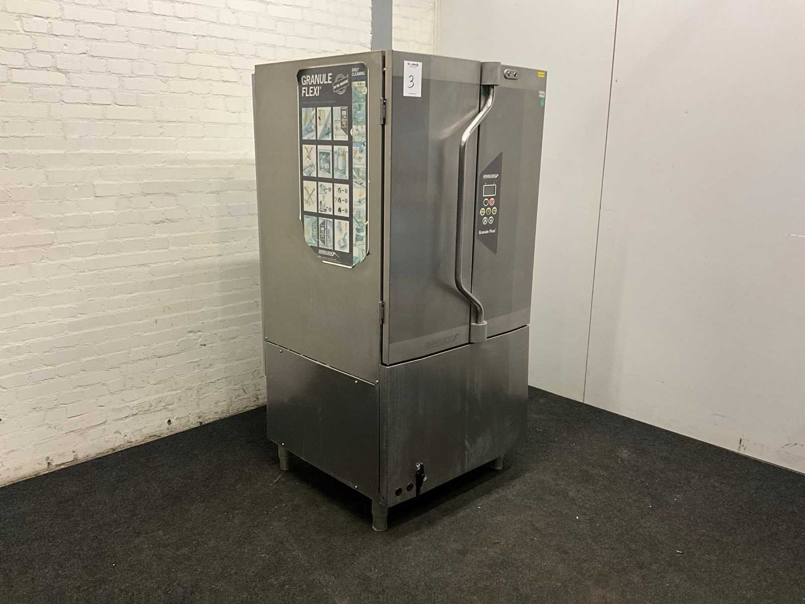 Merk: Granuldisk Type: GRANULE FLEXIBEL CW Totale afmeting L: 90cm Totale afmeting Breedte: 85cm Totale afmeting Hoogte: 175cm Aansluiting: 400V Rvs: true Serienummer: 630192
