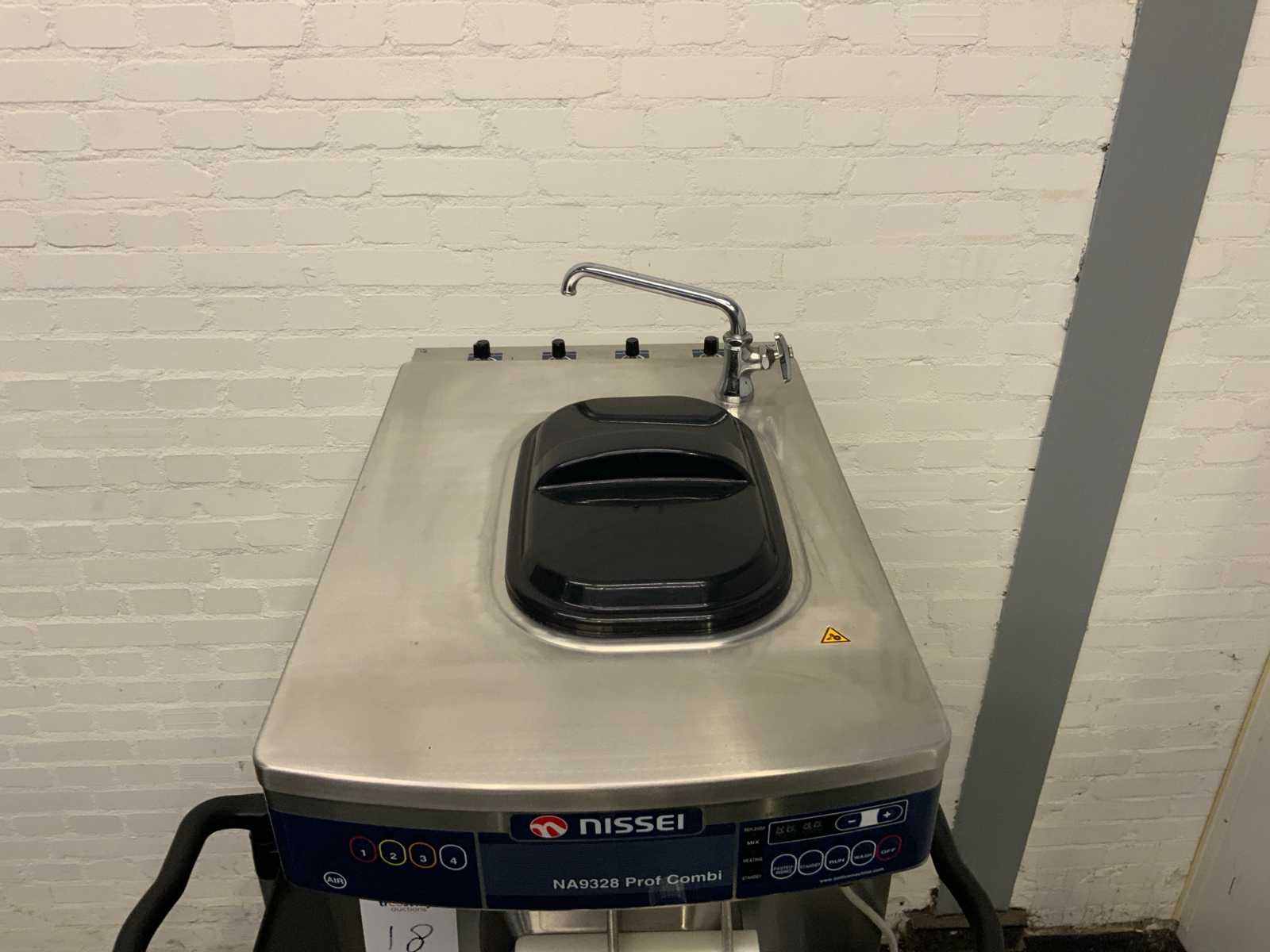 Merk: Nissei Type: NA9328WEG Prof Combi Serienummer: B6160006 Rvs: true Aansluiting: 400V Totale afmeting L: 70cm Totale afmeting Breedte: 45cm Totale afmeting Hoogte: 74cm