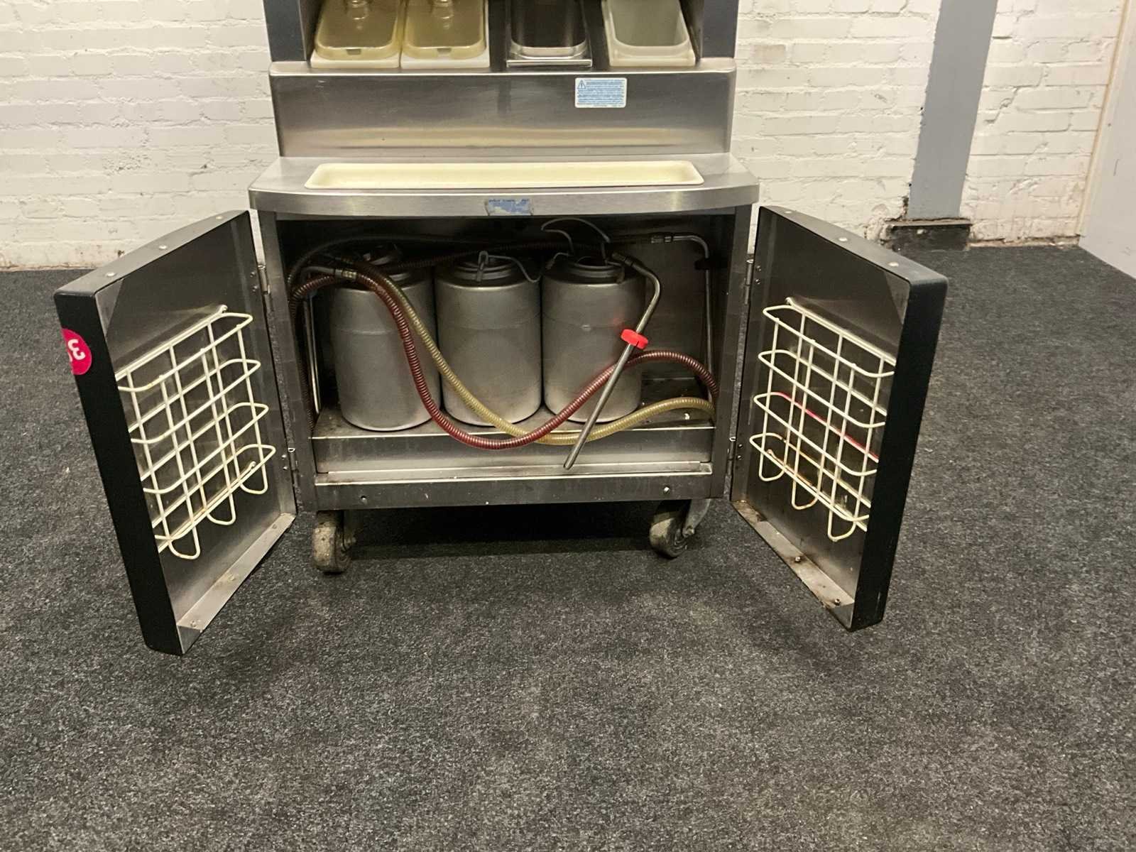 Diverse onderdelen ontbreken Merk: Taylor crown Type: C606-58 Materiaal: RvS Serienummer: K4048896 Aansluiting: 400V Rvs: true Totale afmeting L: 99cm Totale afmeting Breedte: 64cm Totale afmeting Hoogte: 150cm Bouwjaar: 2004