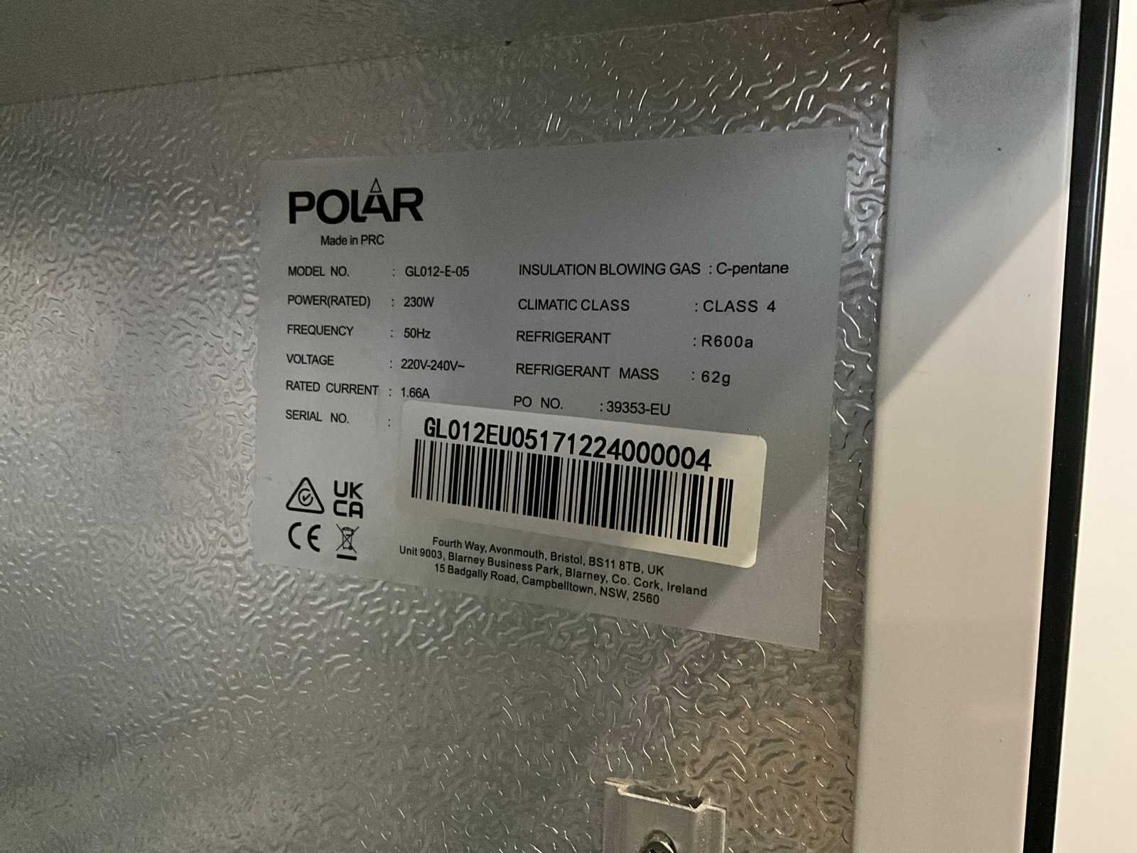 Dient nagekeken te worden Merk: Polar Type: GL012-E-05 Serienummer: GL012EU05171224000004 Klapdeur(en): 2 Regelbare thermostaat: true Digitale uitlezing: true Aansluiting: 230V Totale afmeting L: 500mm Totale afmeting Breedte: 900mm Totale afmeting Hoogte: 830mm